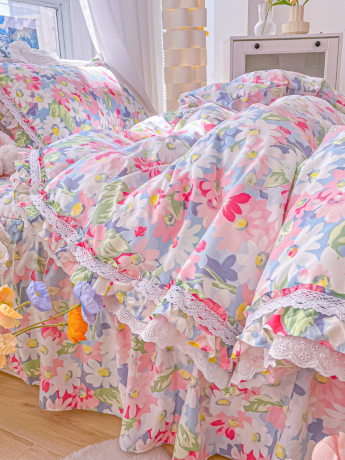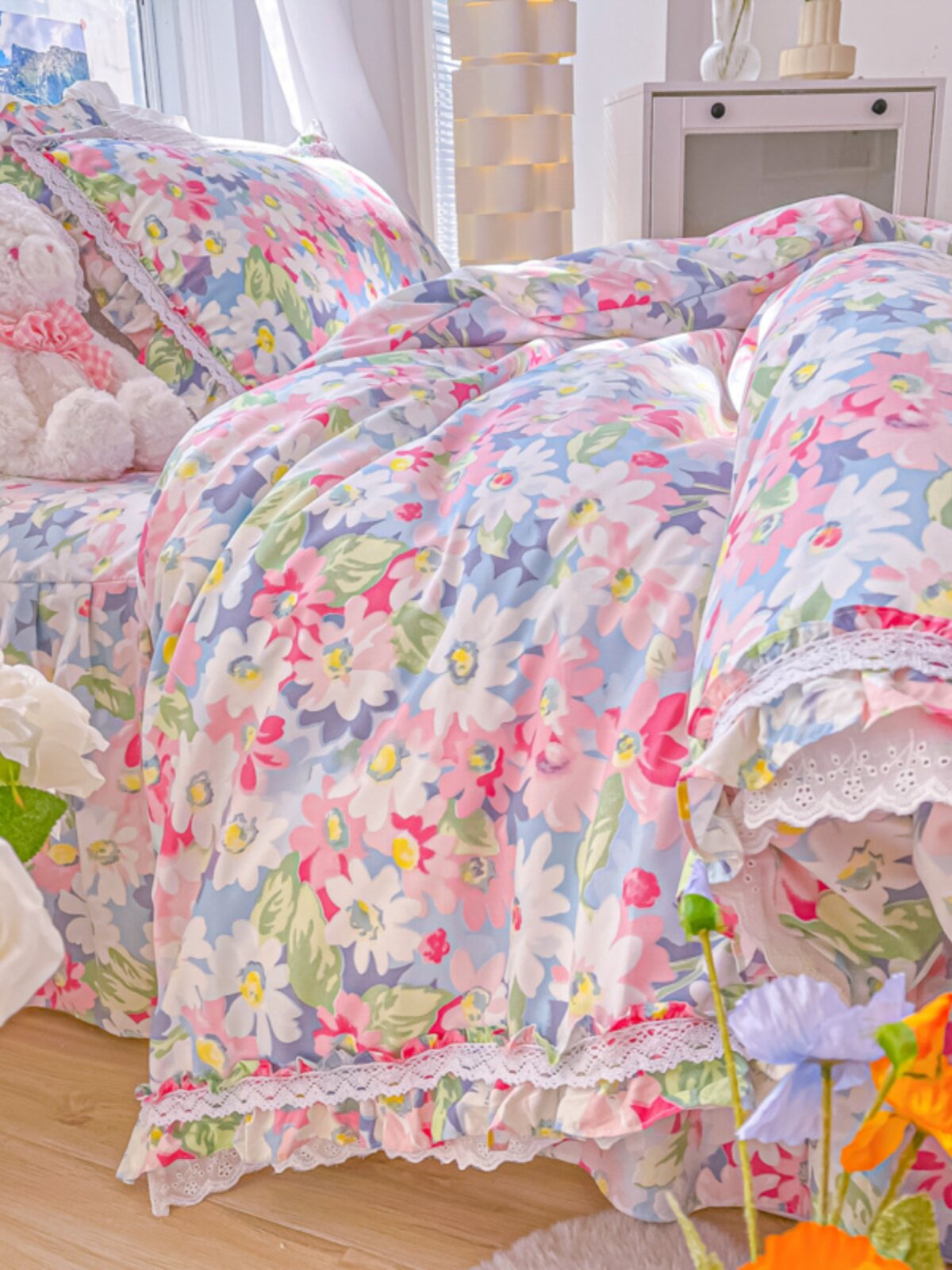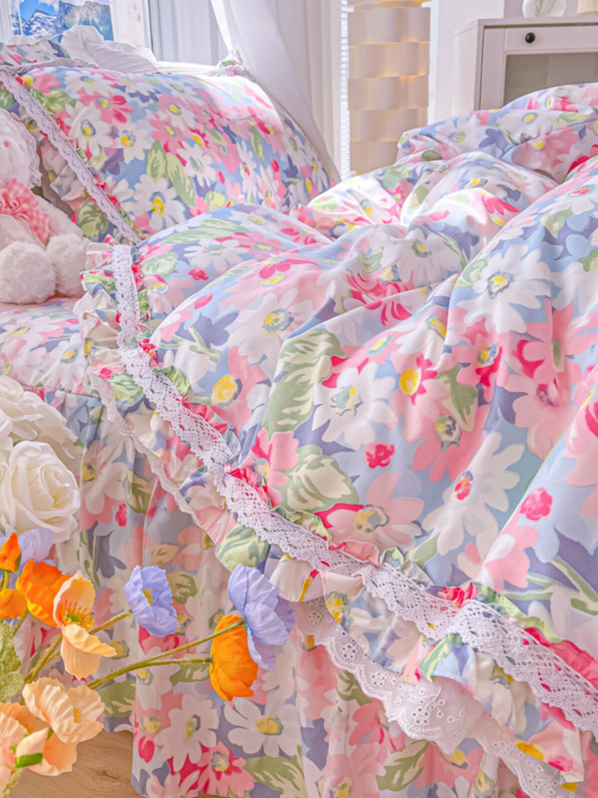 Покрывало в форме цветка, комплект, пододеяльник, стиль, 4 предмета