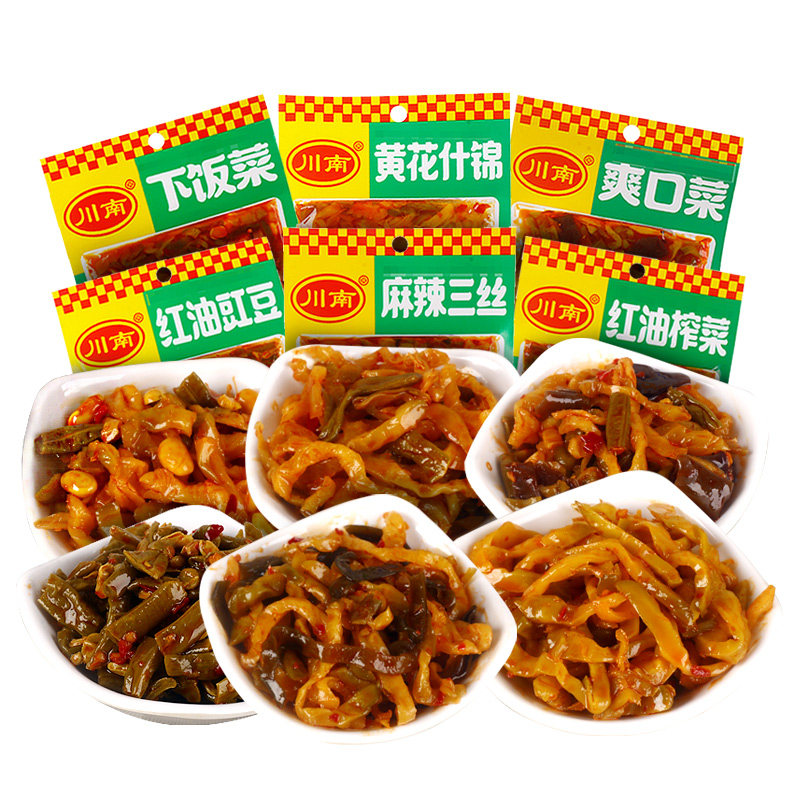 Chuannan Shuang вкусует еду 120g*10 мешков с маленькими солеными огурцами Sichuan, красным маслом вилты с желтыми цветами.