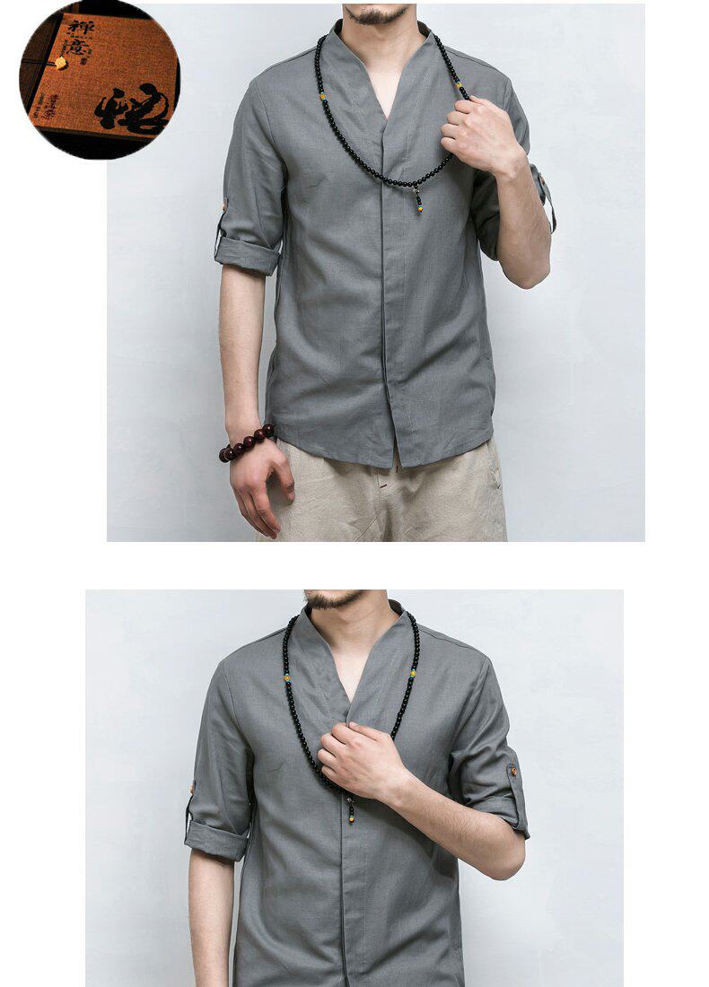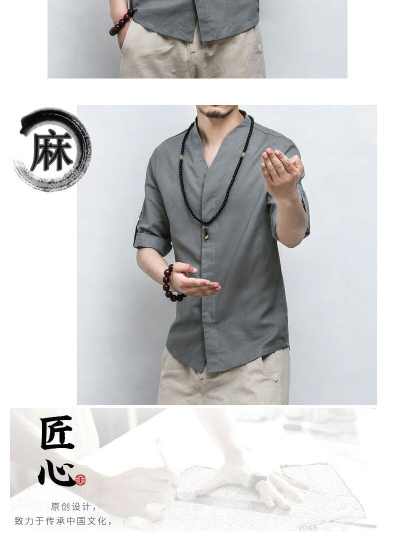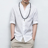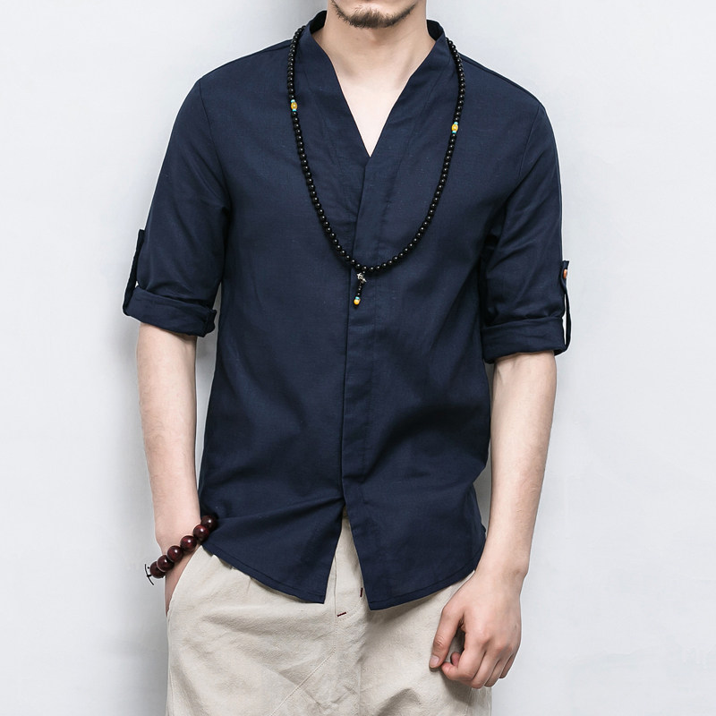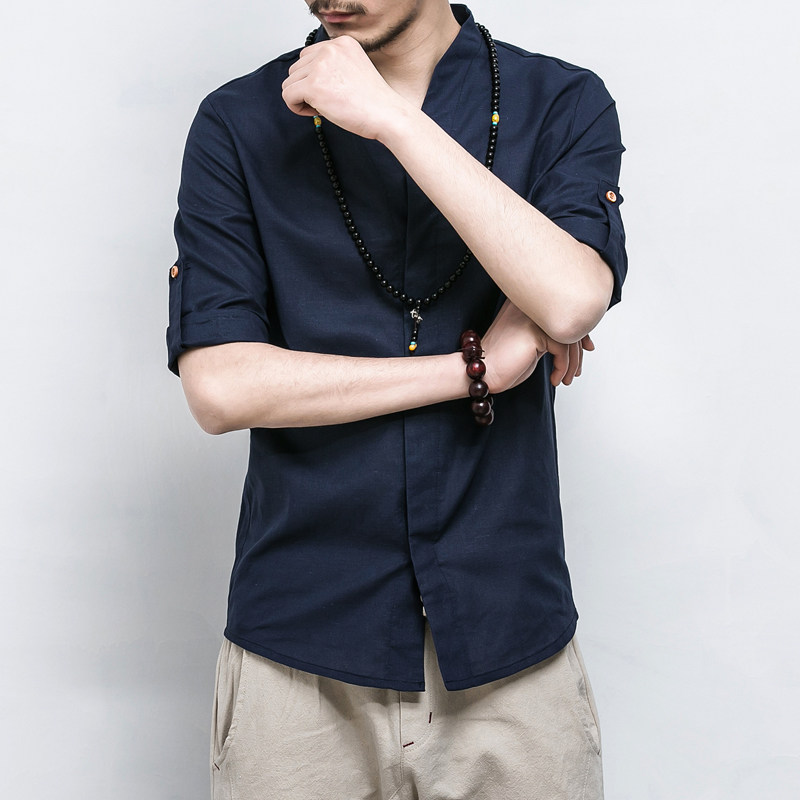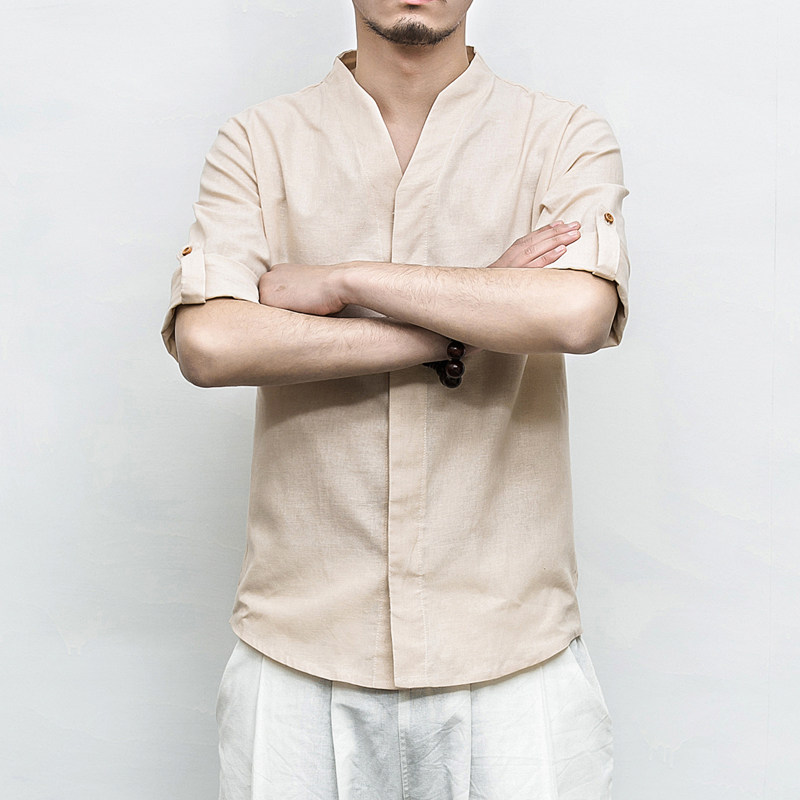 Летняя рубашка, ханьфу, китайский стиль, свободный крой, большой размер, из хлопка и льна, короткий рукав