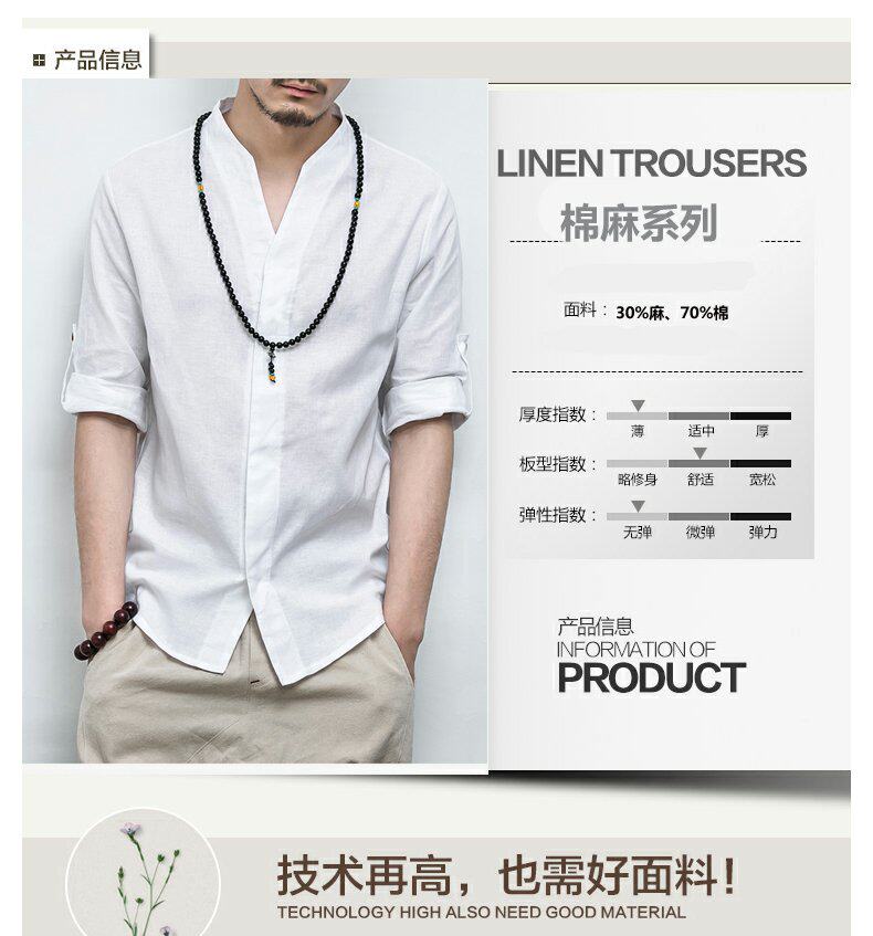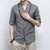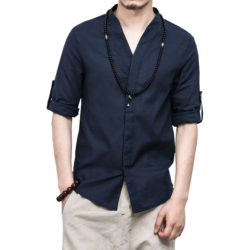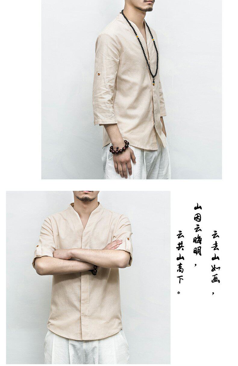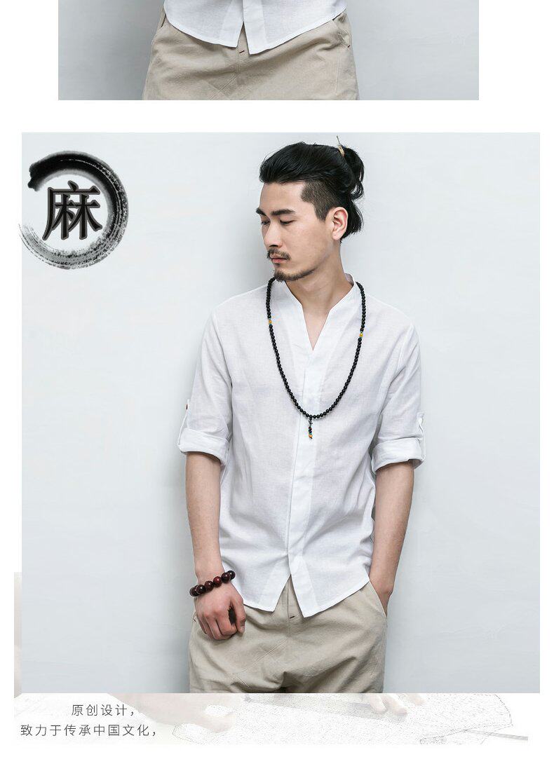 Летняя рубашка, ханьфу, китайский стиль, свободный крой, большой размер, из хлопка и льна, короткий рукав