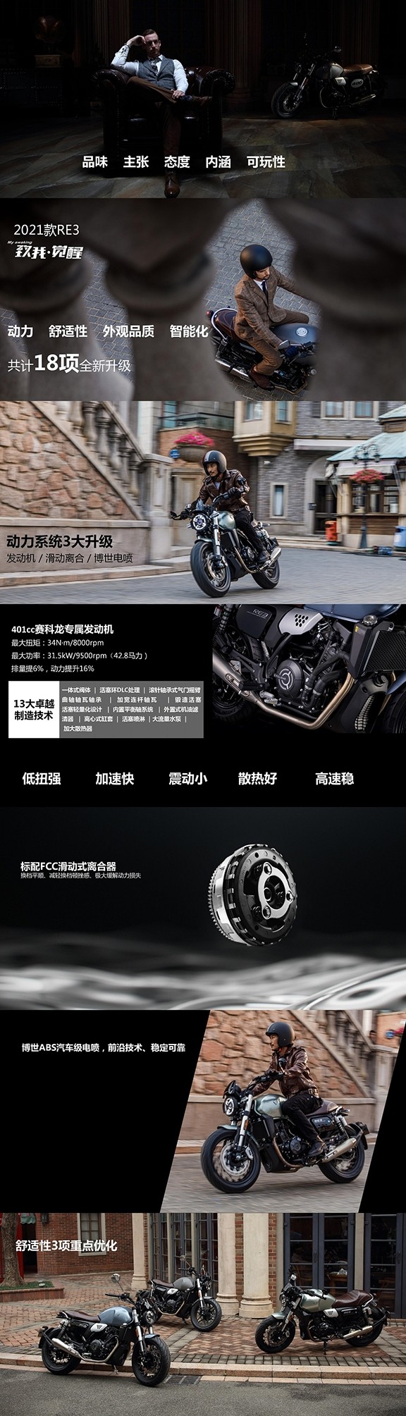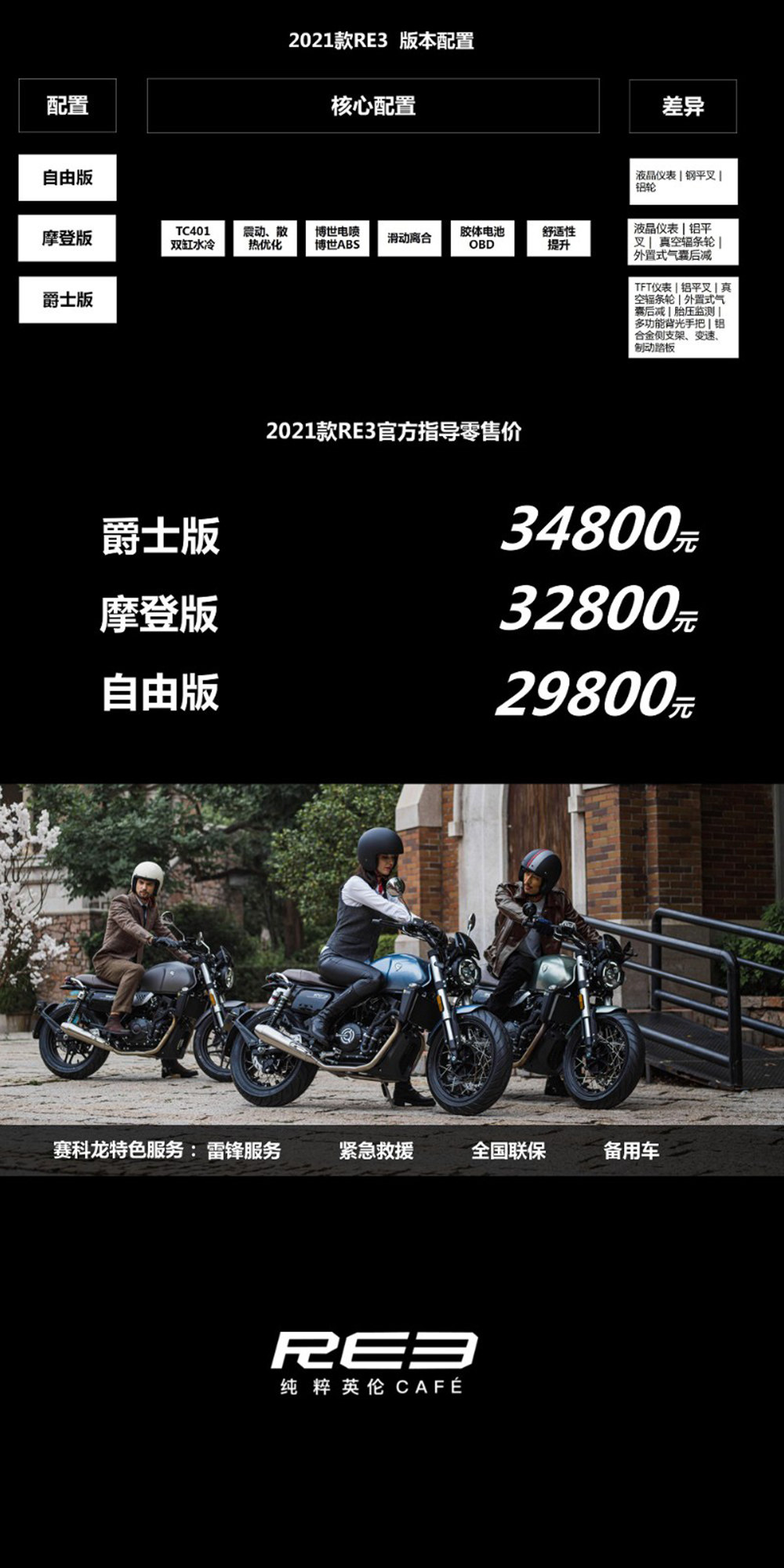 2021 Zongsai Kelong Re3 Retro Motorcycle Youth Free Modern Jazz Edition Shuangbar Water Cold Four Chongsun
