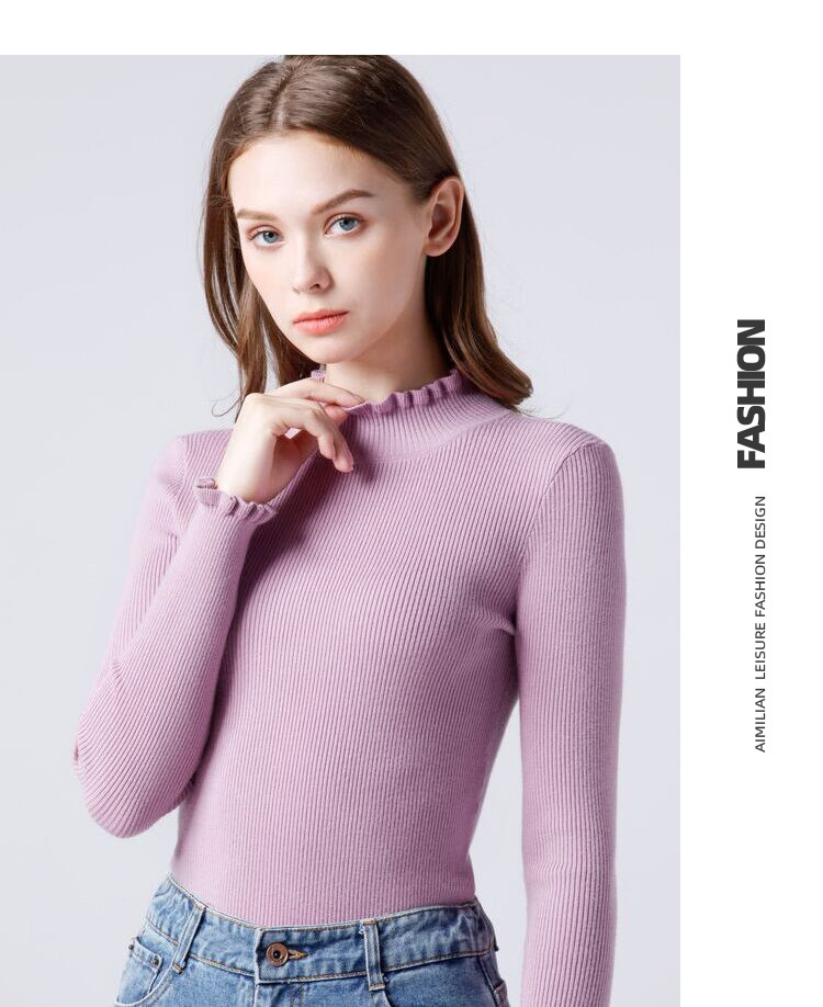 艾米恋 Демисезонный приталенный трикотажный свитер, высокий воротник, в обтяжку