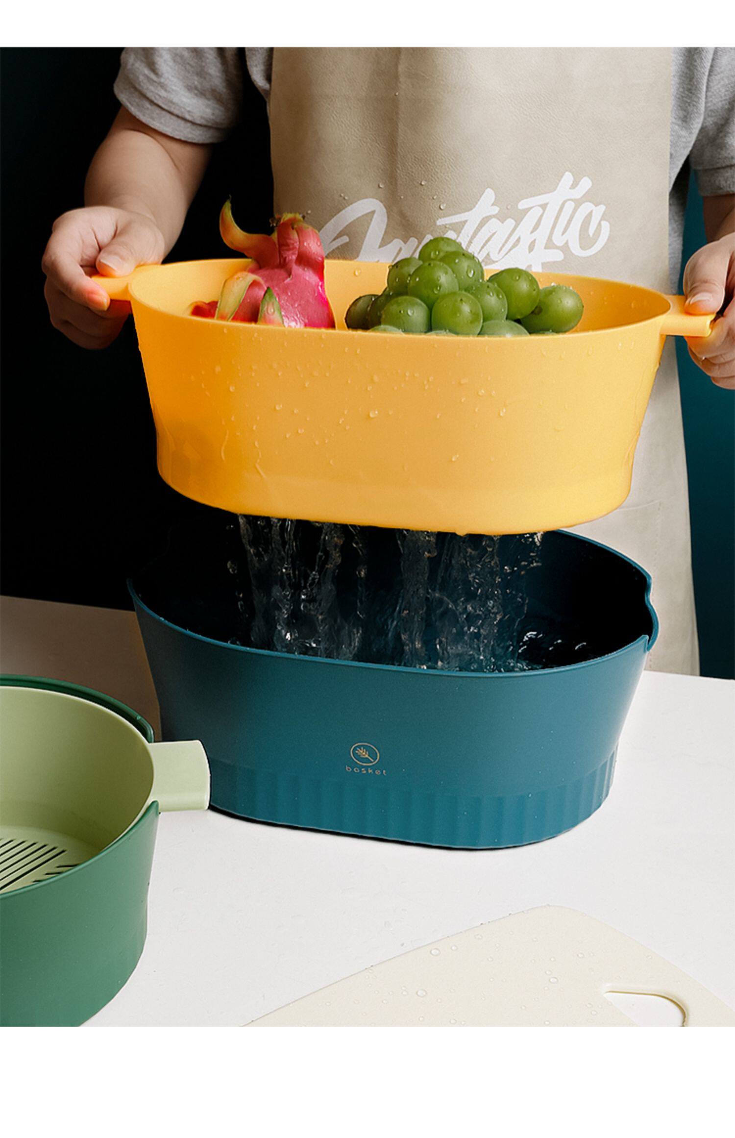 Sanmu Qinghe Double -Layer Washed Fruit Fryse Basin Basin Baske Basin Basin Multifunctional Home многофункциональный домашний многоупомянутый