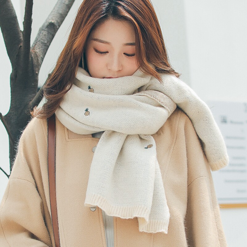 Демисезонный трикотажный милый зимний универсальный удерживающий тепло брендовый шарф, с вышивкой, в корейском стиле