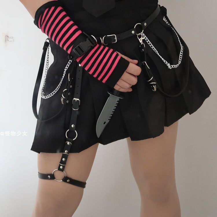 Девять -мои магазины трех цветов в Индии Diablo Harajuku Poch Bad Girl Tego JK Юбка талия