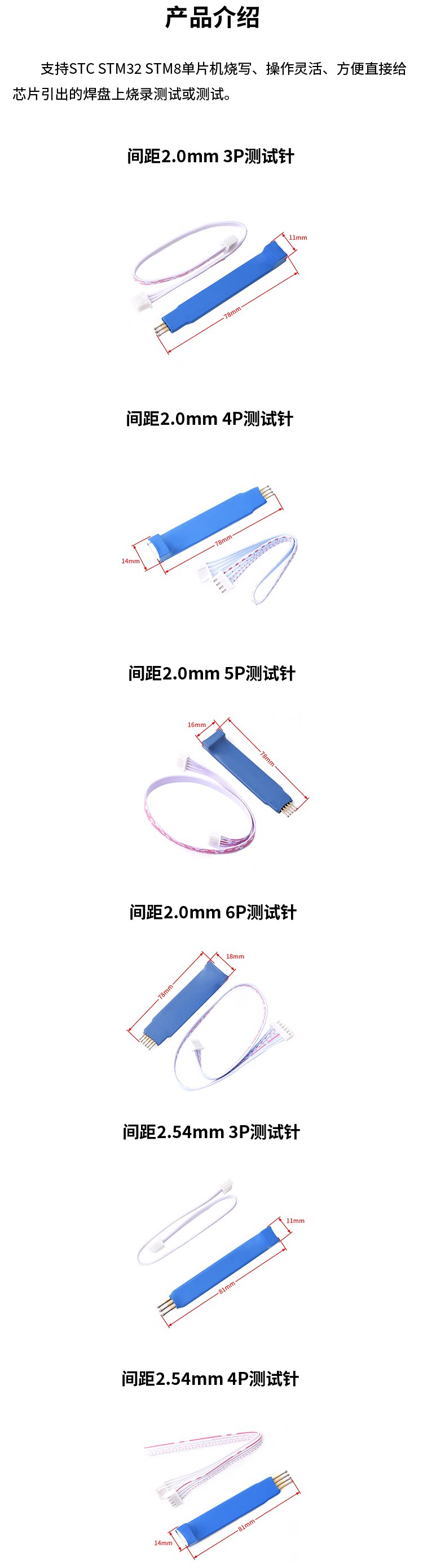 2,0/2,54 мм 3/4/5/6p испытательная игла пружина пружина зонд STC STM32 8 Arm Microcomputer Gurn