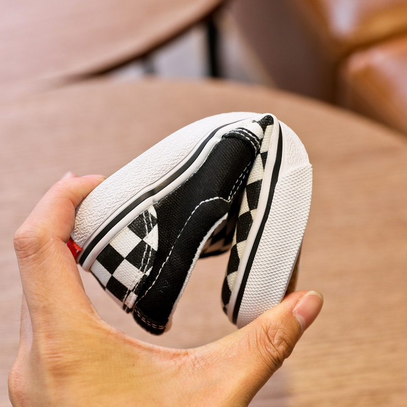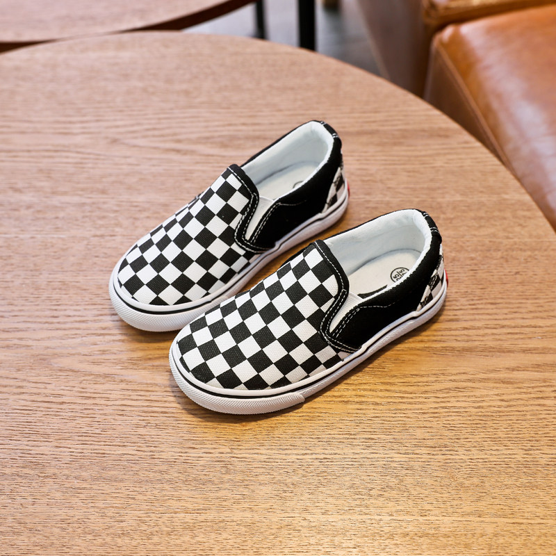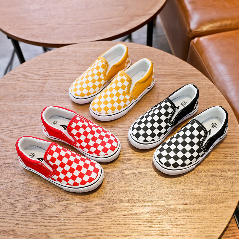 Детская парусиновая обувь, детская обувь без шнуровки, клетчатые кроссовки Feiyao для мальчиков, повседневная обувь для девочек в корейском стиле, весенне-осенний тренд