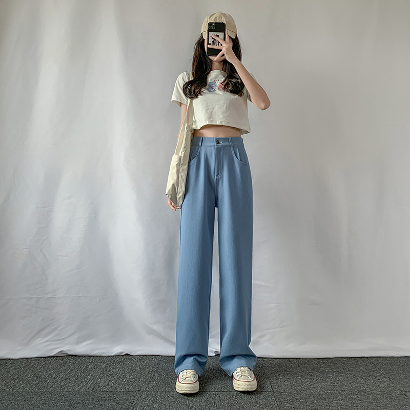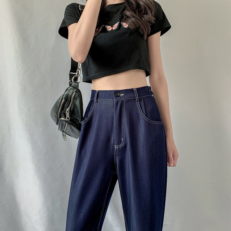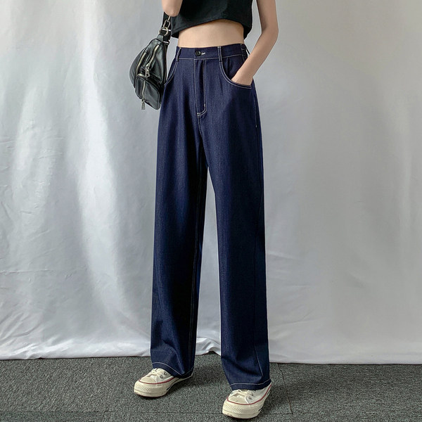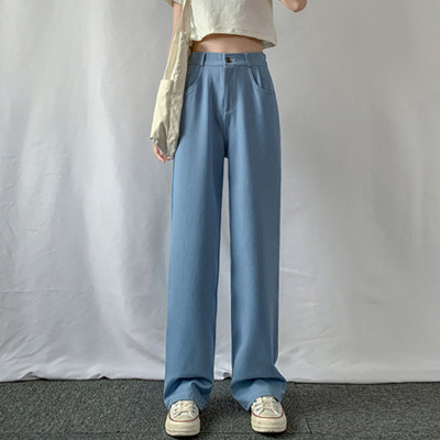Тонкие джинсы, шелковые ультратонкие темные штаны, высокая талия, свободный крой, подходят для подростков