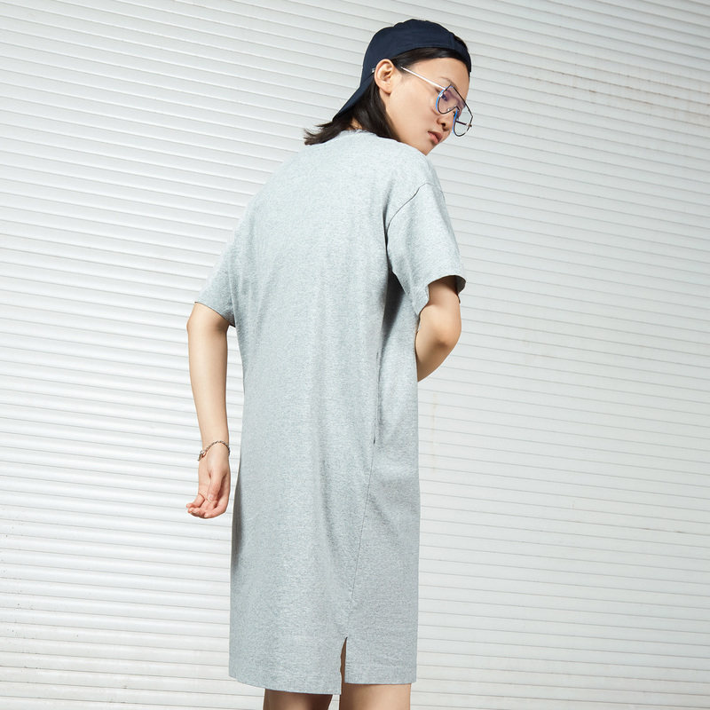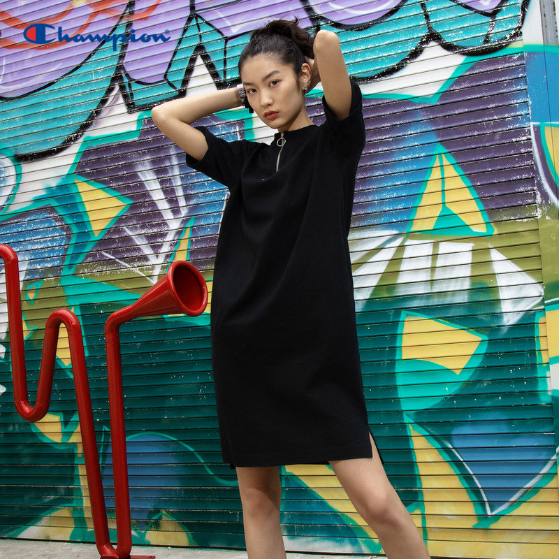 Летняя хлопковая футболка с молнией для отдыха, черное спортивное платье, на молнии