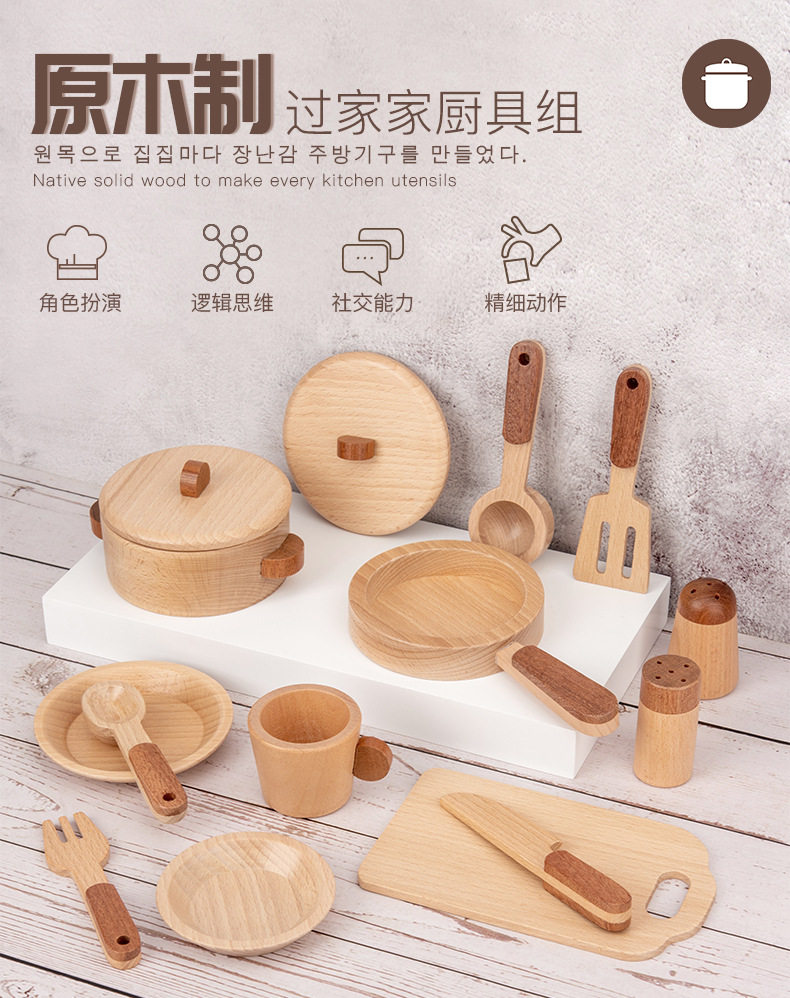 Деревянная реалистичная семейная кухонная утварь, комплект, игрушка для мальчиков и девочек, 3-6 лет