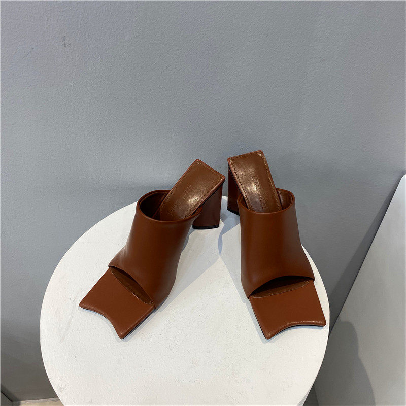 MYSEL модные парижские подиумные весенне-летние кожаные тапочки на высоком каблуке в форме головы новолуния, персонализированная женская обувь интернет-знаменитостей
