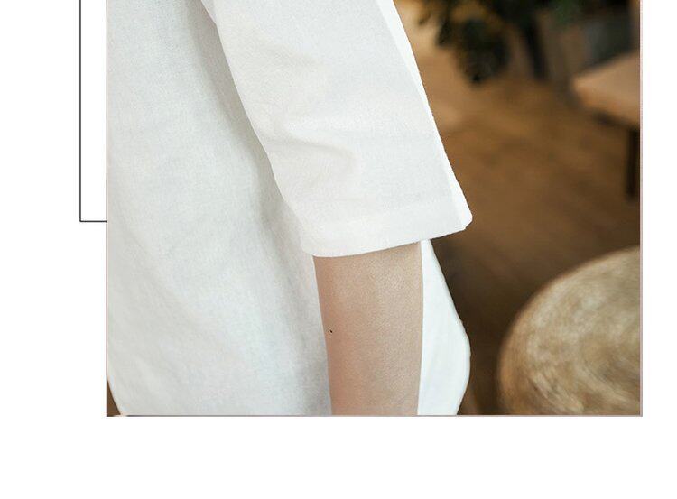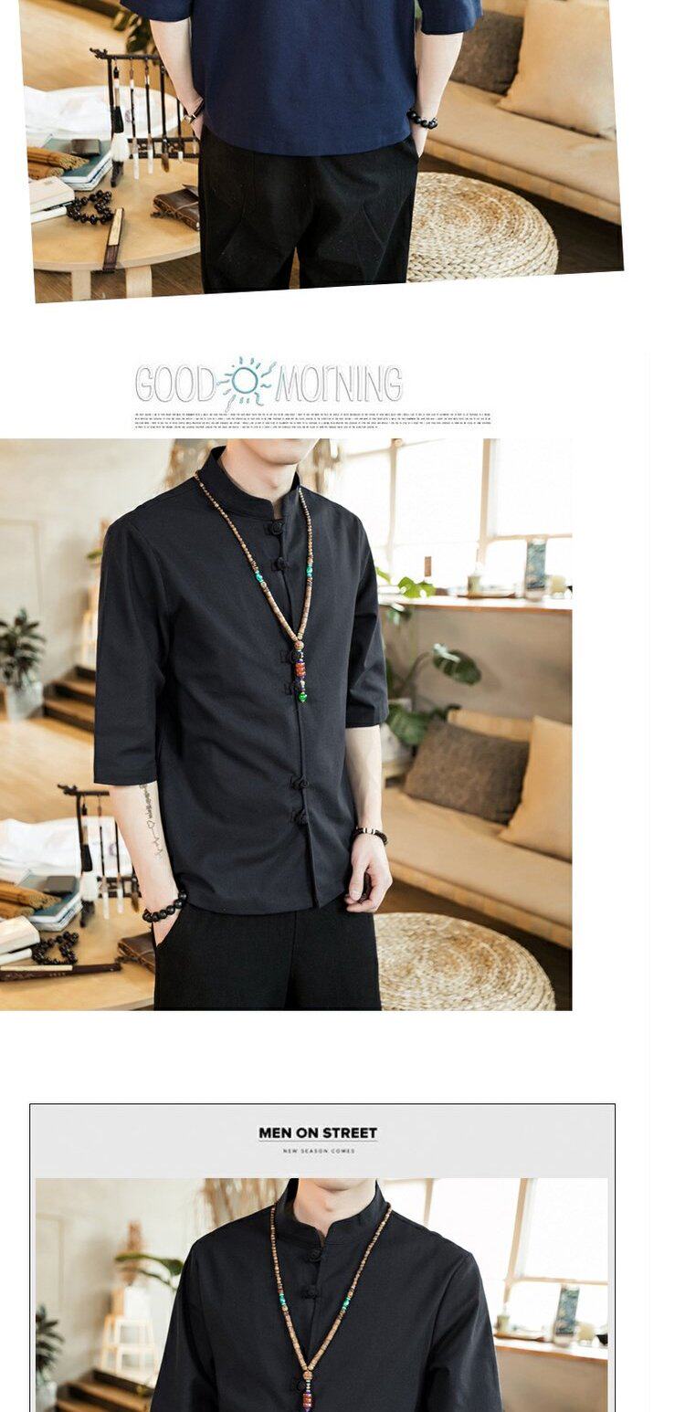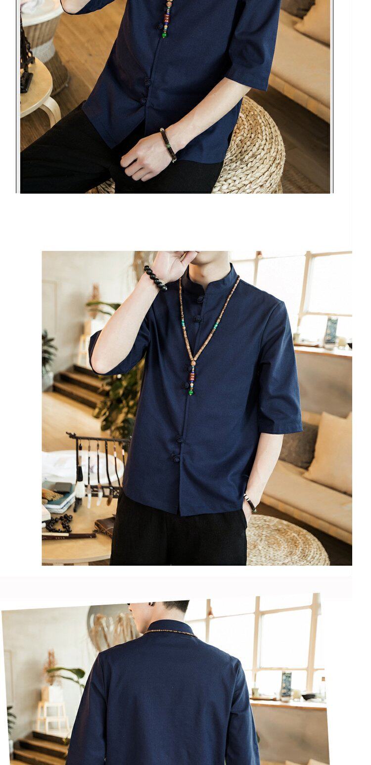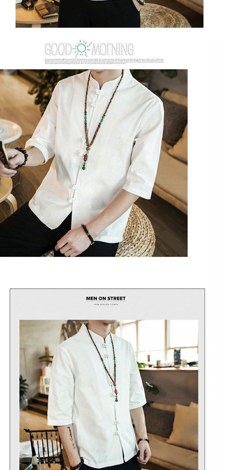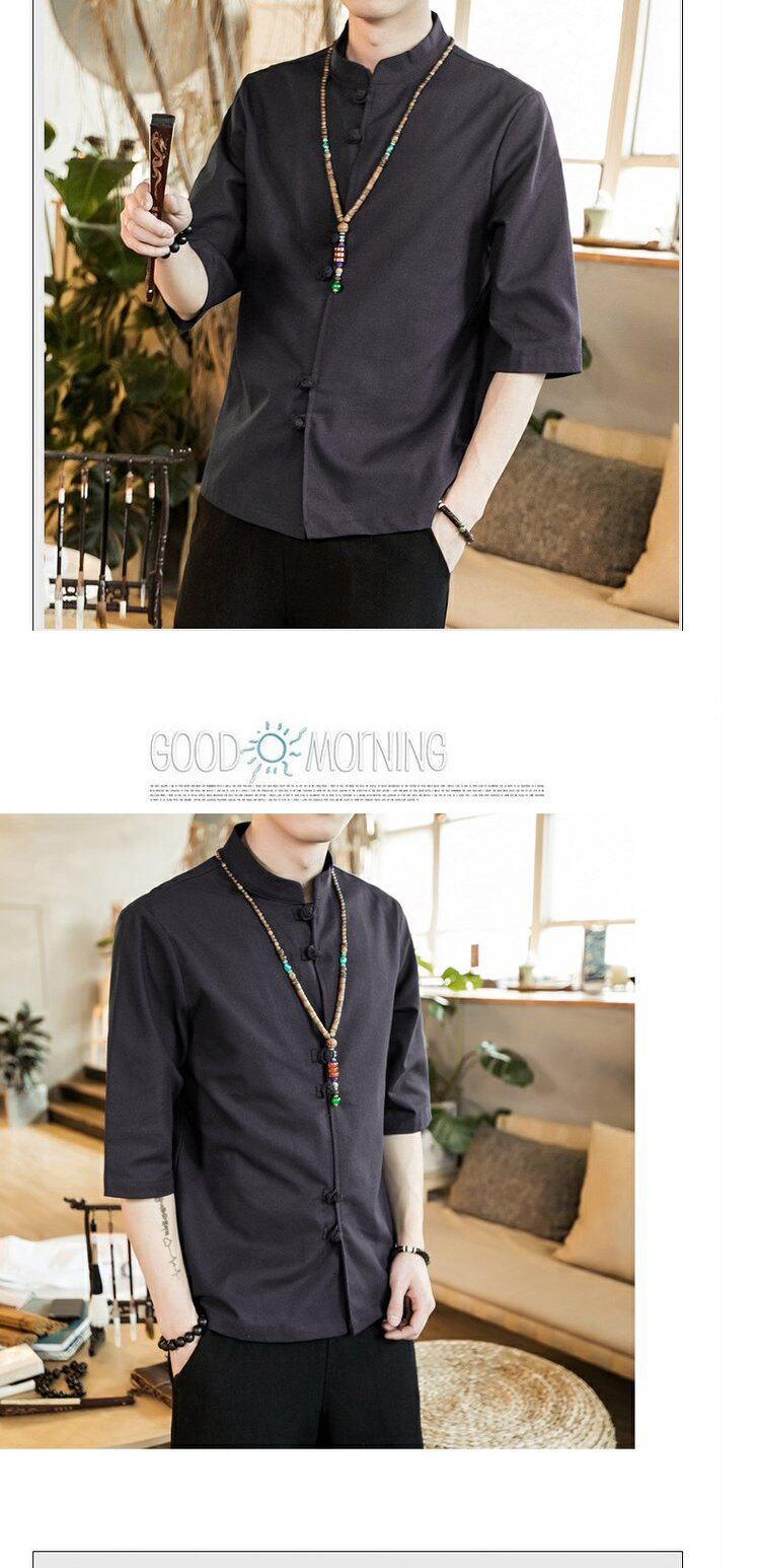Ретро рубашка, свободный крой, из хлопка и льна, китайский стиль, короткий рукав