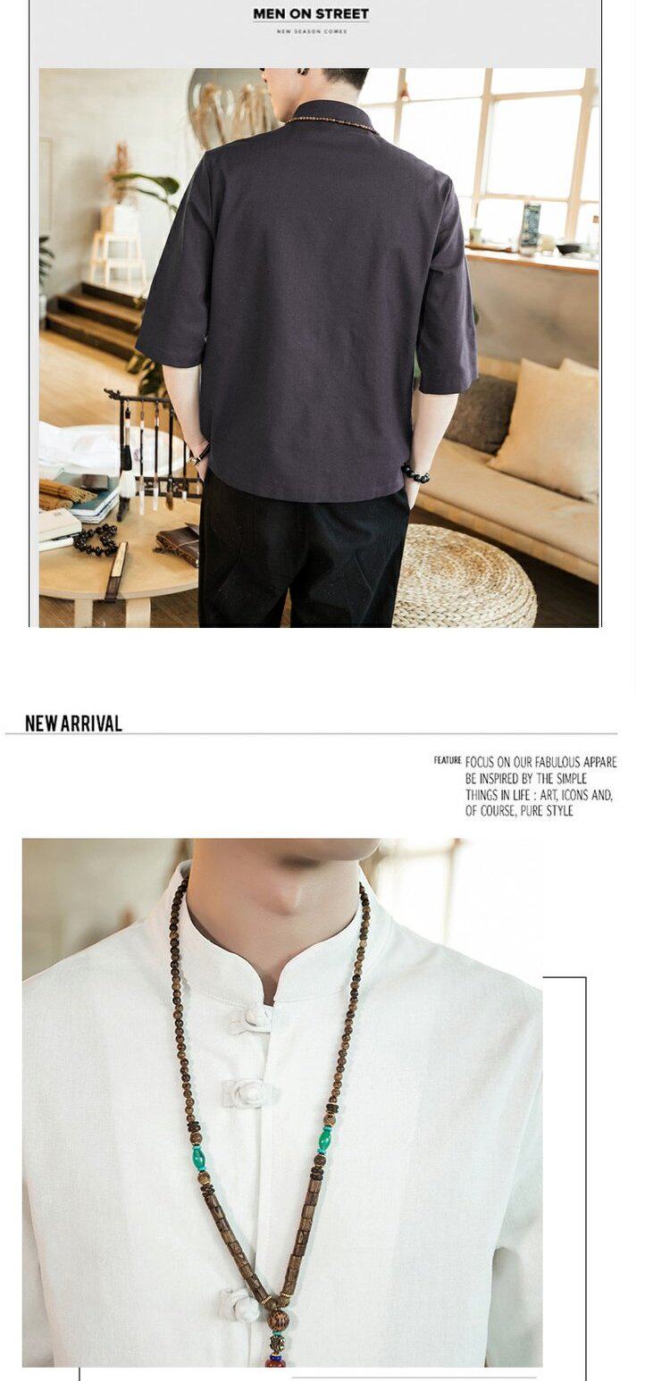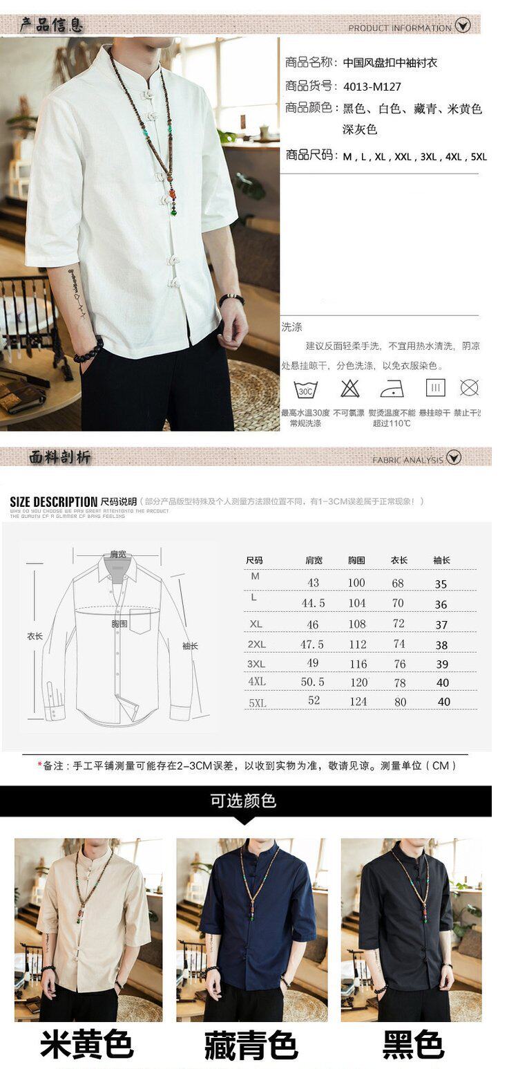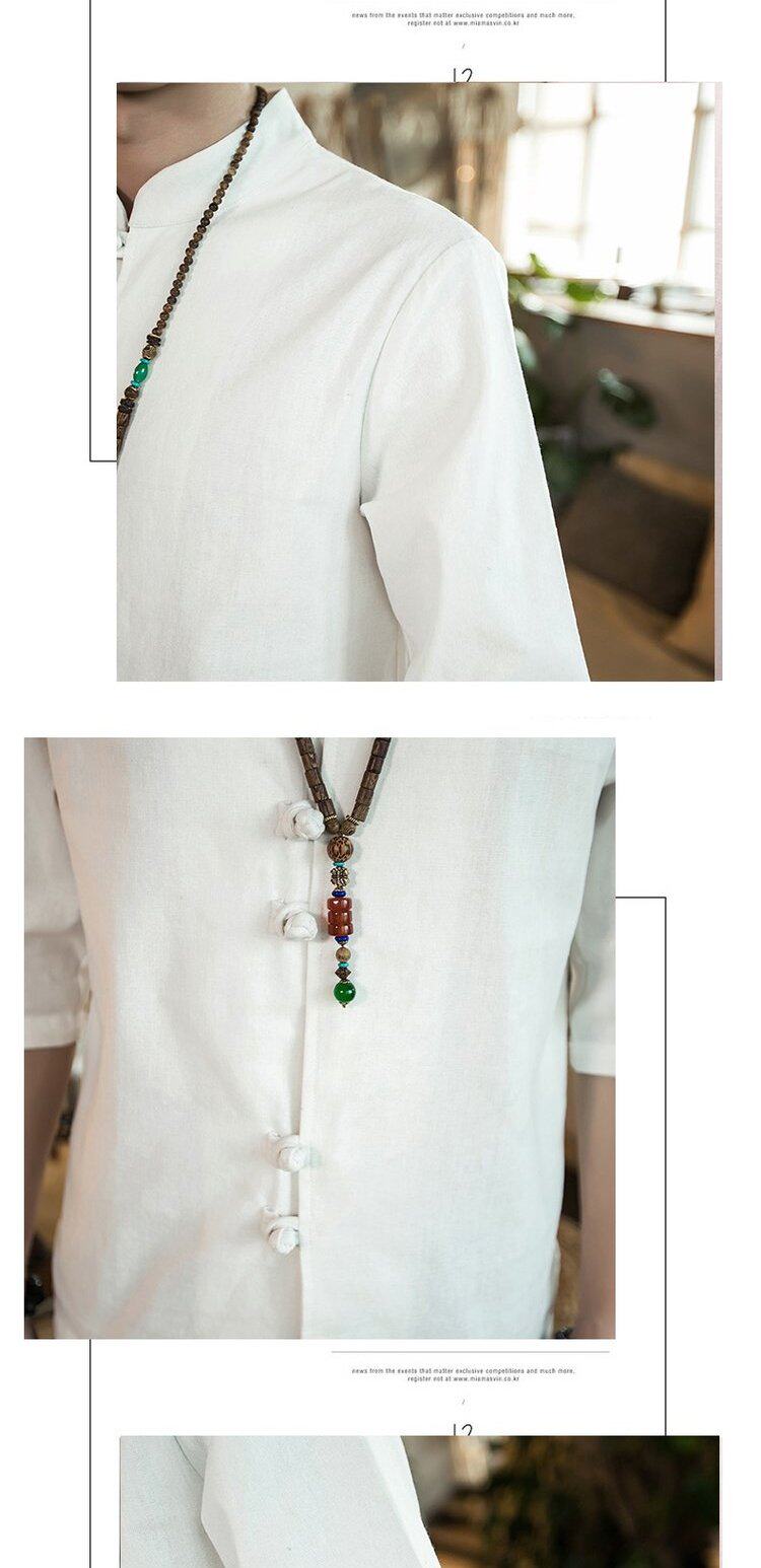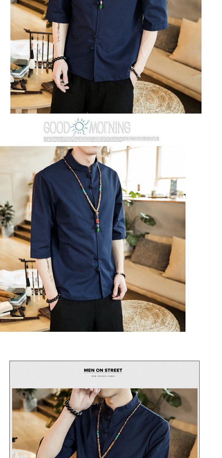 Ретро рубашка, свободный крой, из хлопка и льна, китайский стиль, короткий рукав