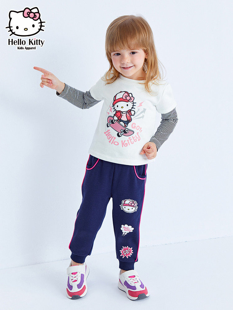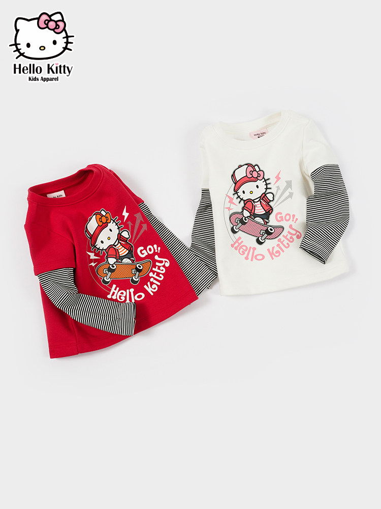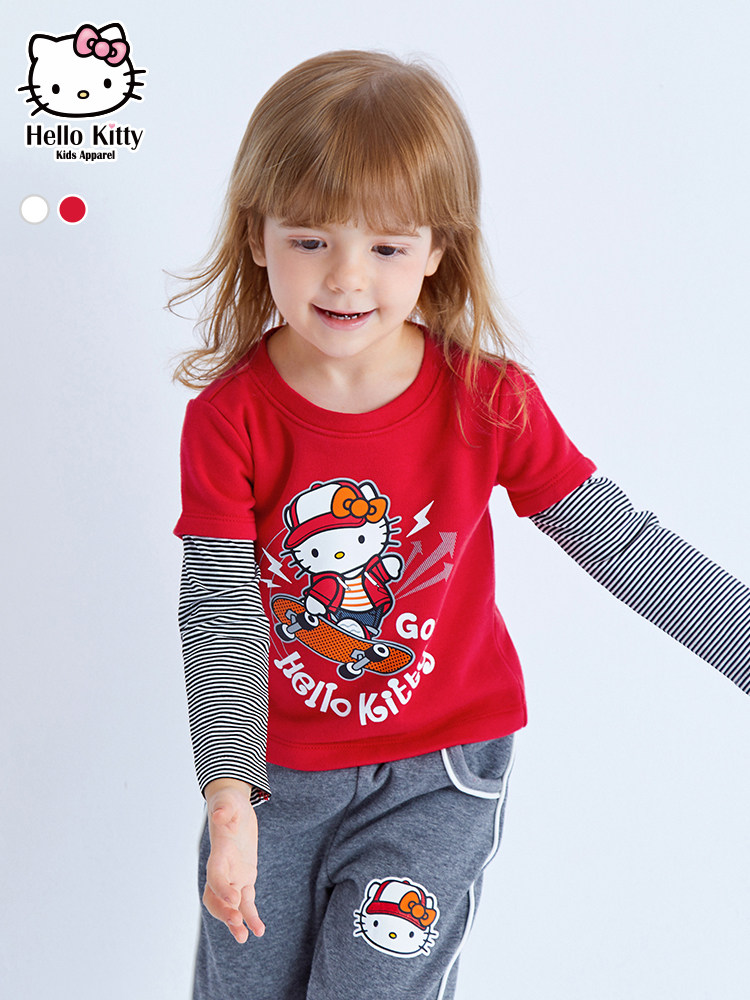 Hello Kitty, осенний лонгслив с круглым воротником, детская одежда, коллекция 2021, в западном стиле