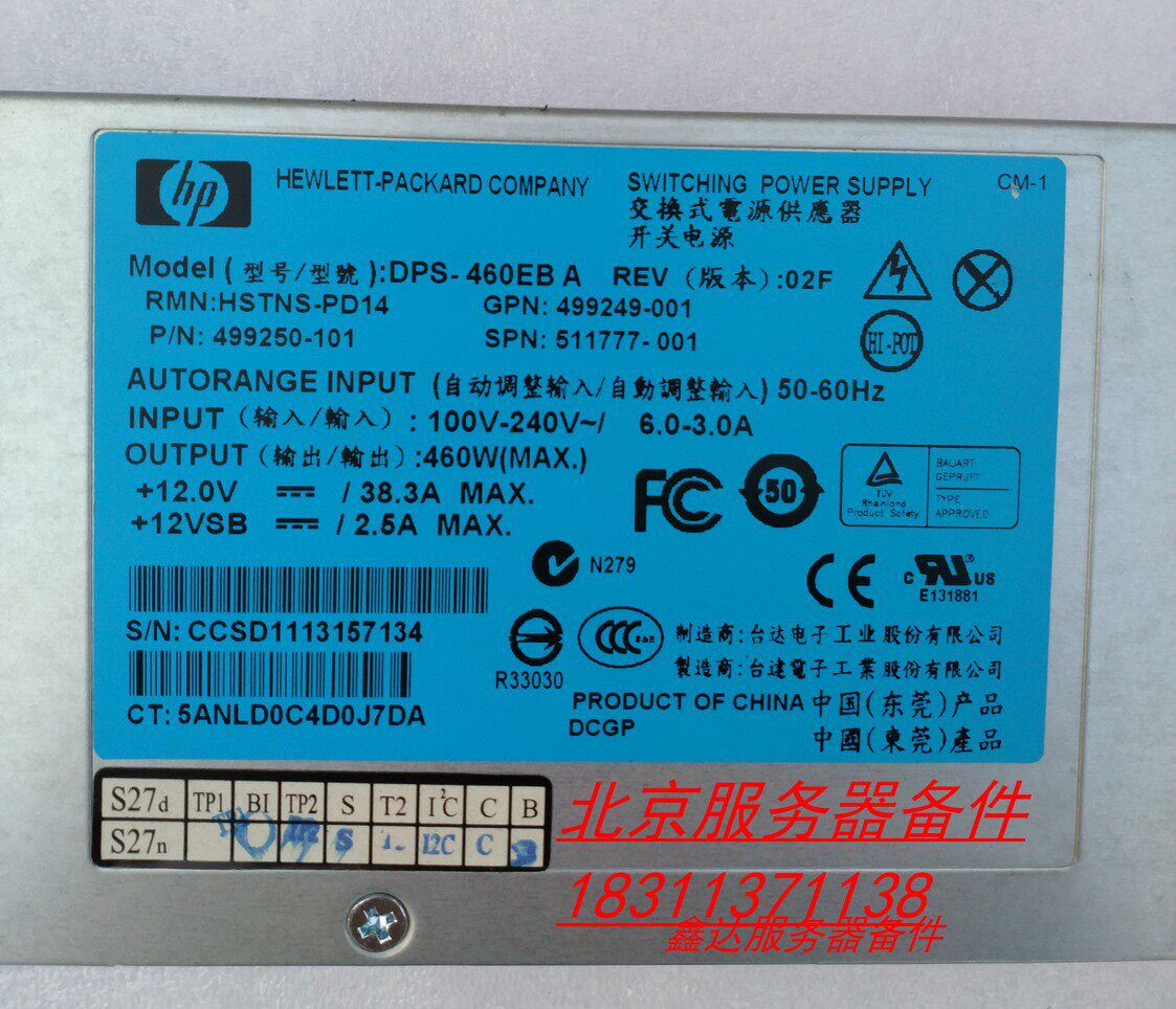 HP DL360 DL380G6 G7 G8 460W Серверный источник питания 511777-001 499249-001
