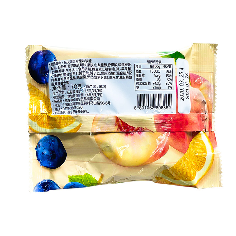 Южная Корея импортировала лотте лотте виноградное оранжевое персиковое персик три вида фруктовых аромата клубничная сеть красная закуска помадка