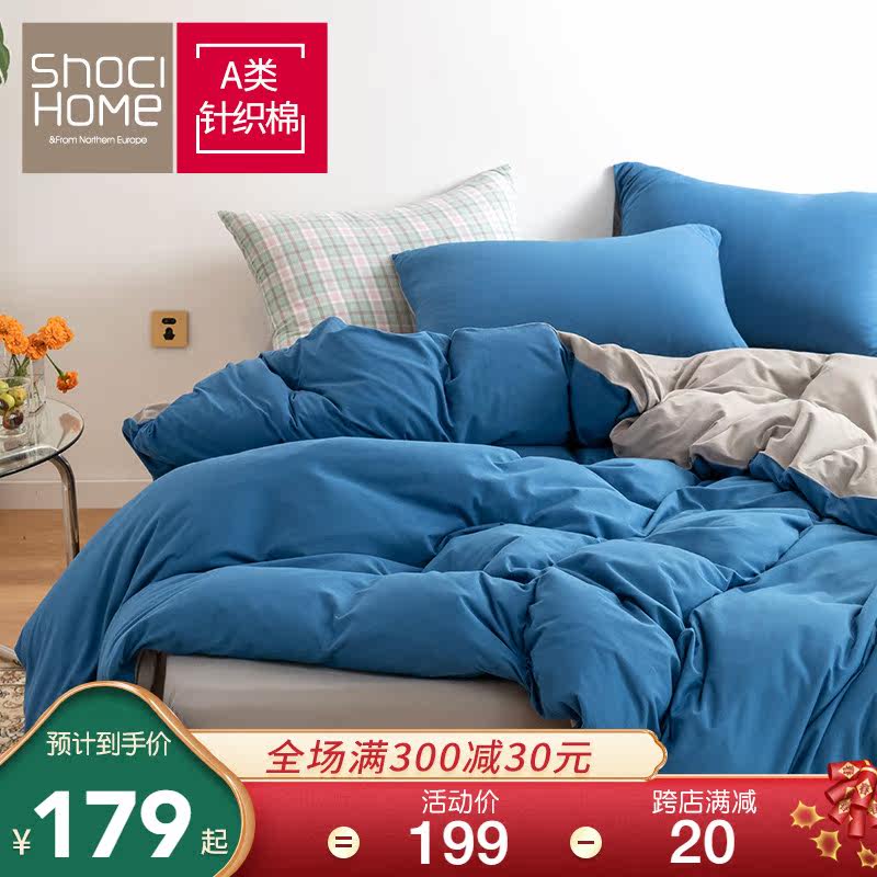 Хлопковый трикотажный комплект, простыня, пододеяльник, 4 предмета, 3 предмета