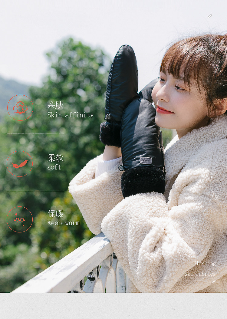 Удерживающие тепло утепленные милые перчатки, зимний ветрозащитный комплект с пухом