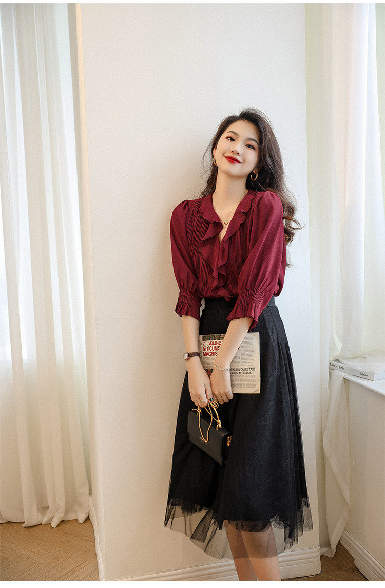Ron Original Women Design Nishe Summer Thin Thin 2020 Новый шифоновый французский V-образный выстрел T Top T