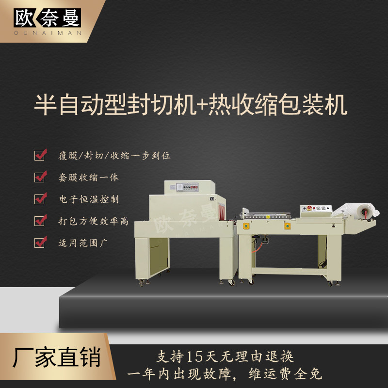 Оунайман/Оумановый пневматический L -обратный резак для уплотнения BSD450B+FQL450T Высоко -платформный тепловой упаковщик Полуавтоматическая пленочная машина подходит для обувной коробки для подарочной коробки чайная коробка упаковка