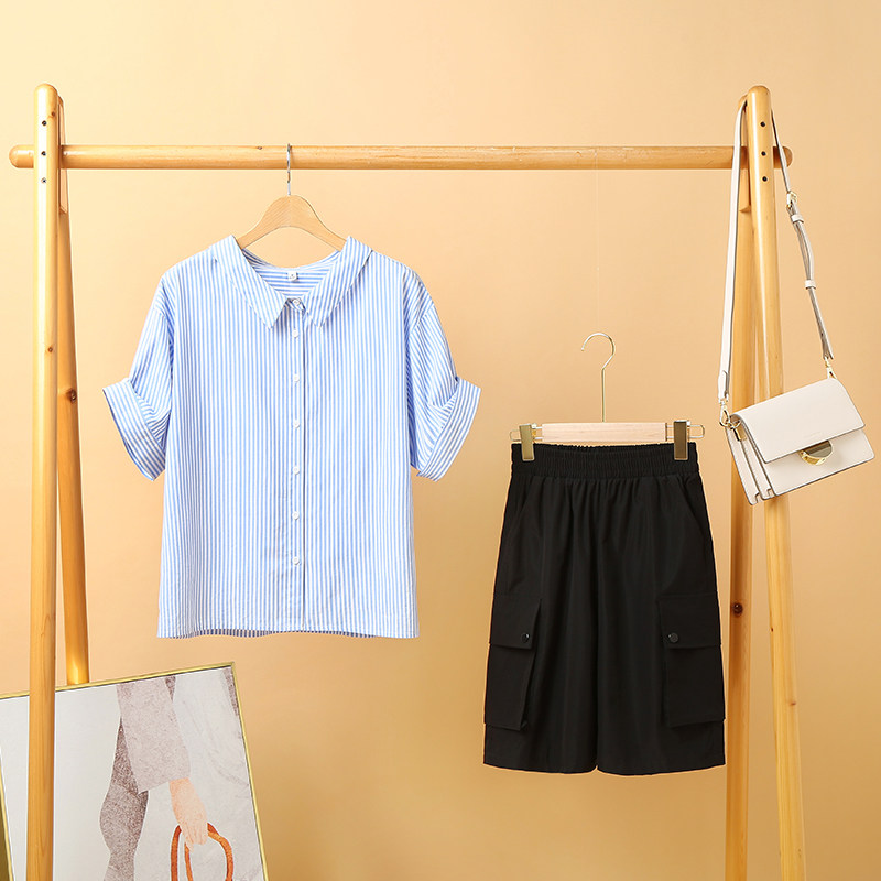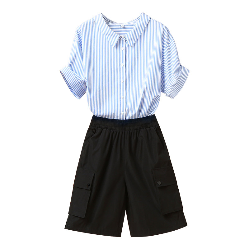 艾米恋 Летняя рубашка, комплект, хлопковые штаны, 2020, свободный крой