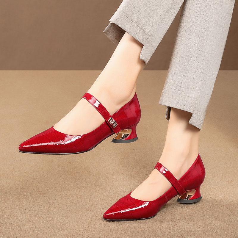Обувь с заостренным носом, модель весна/осень 2021 года, из натуральной кожи, большой размер