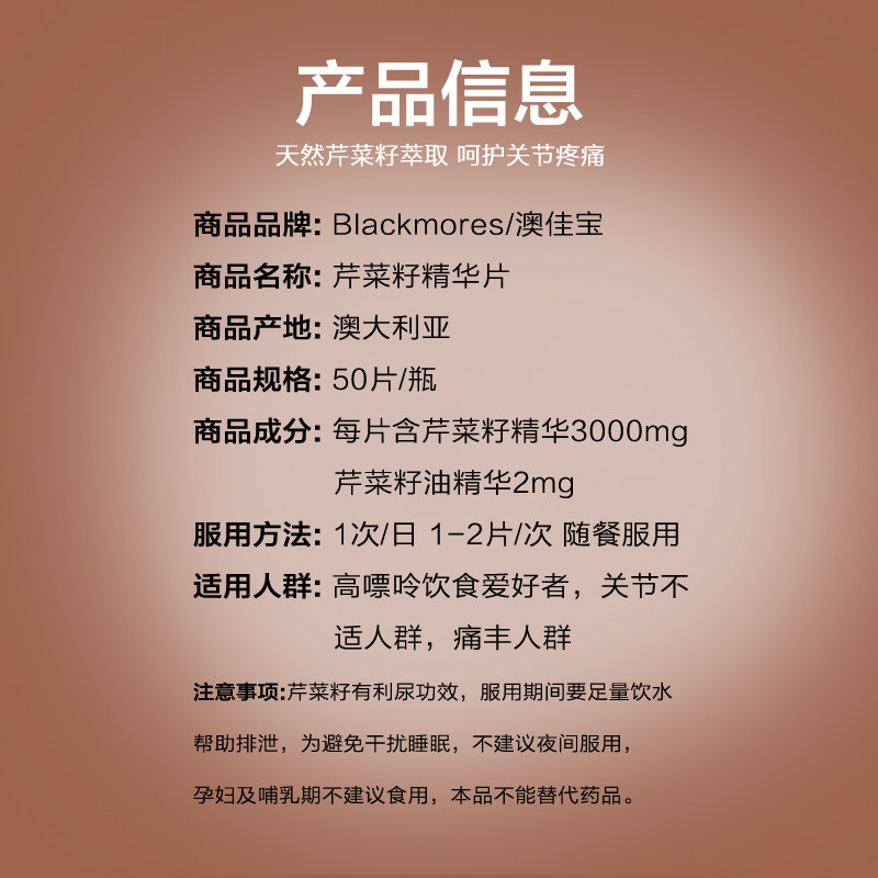Австралийские семена сельдерея Blackmores Экстракт семян сельдерея для здоровья суставов, уменьшение боли и снижение кислотности, 50 таблеток