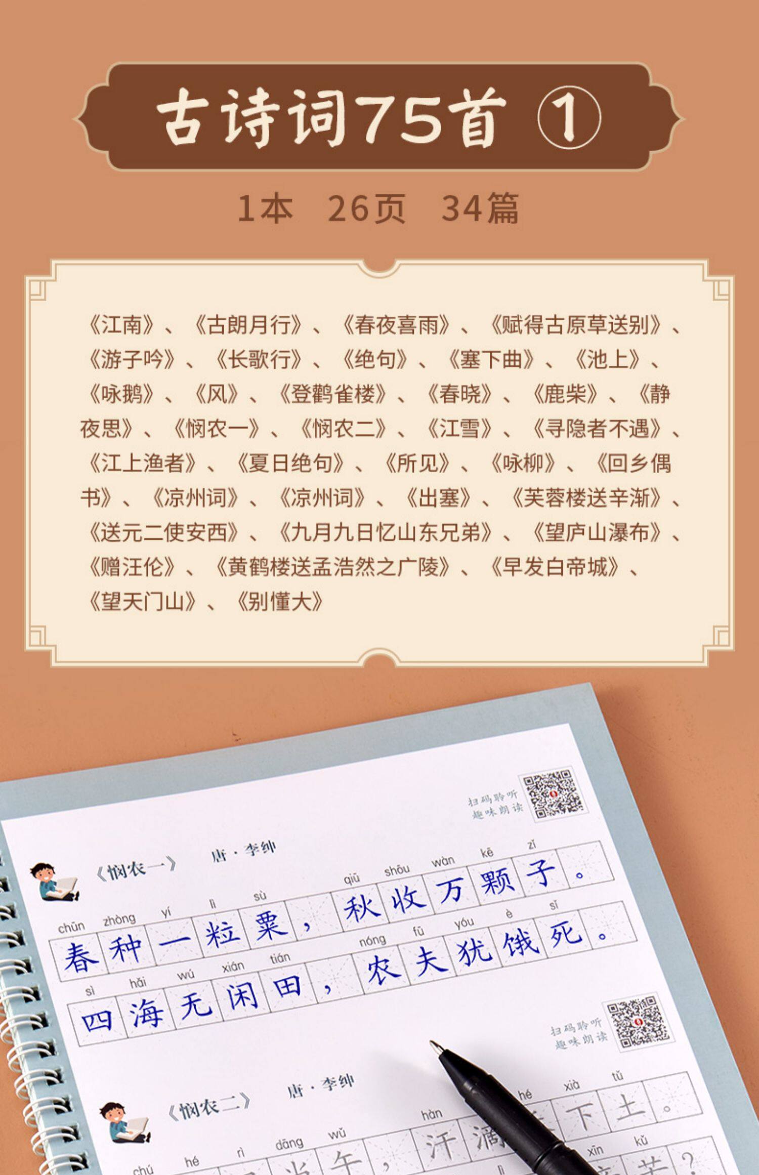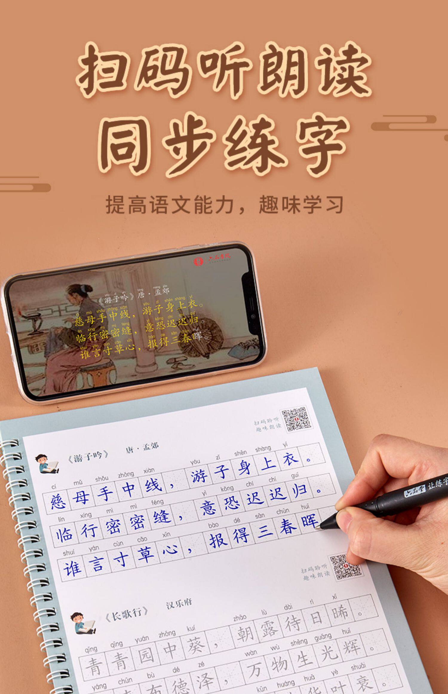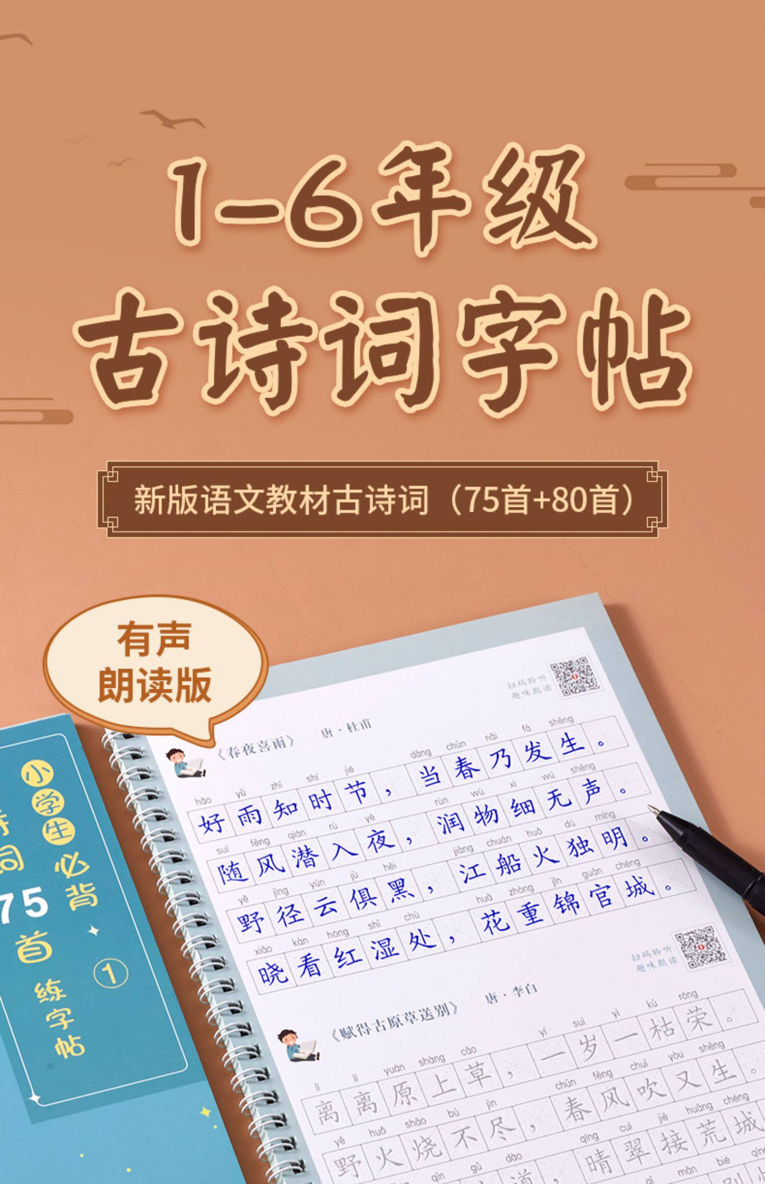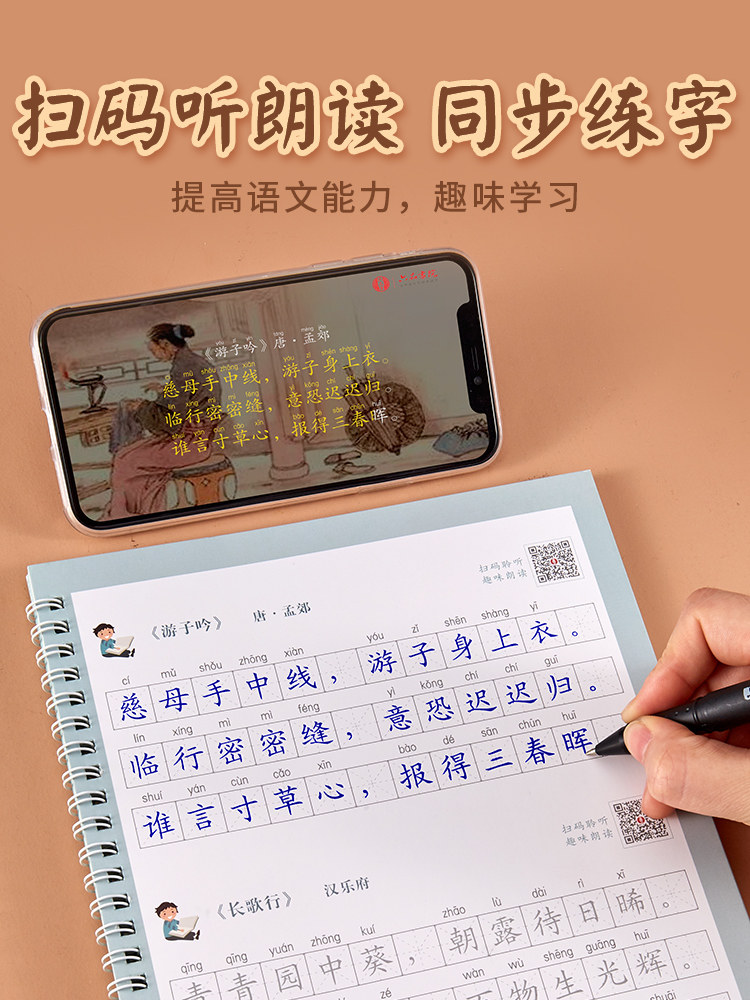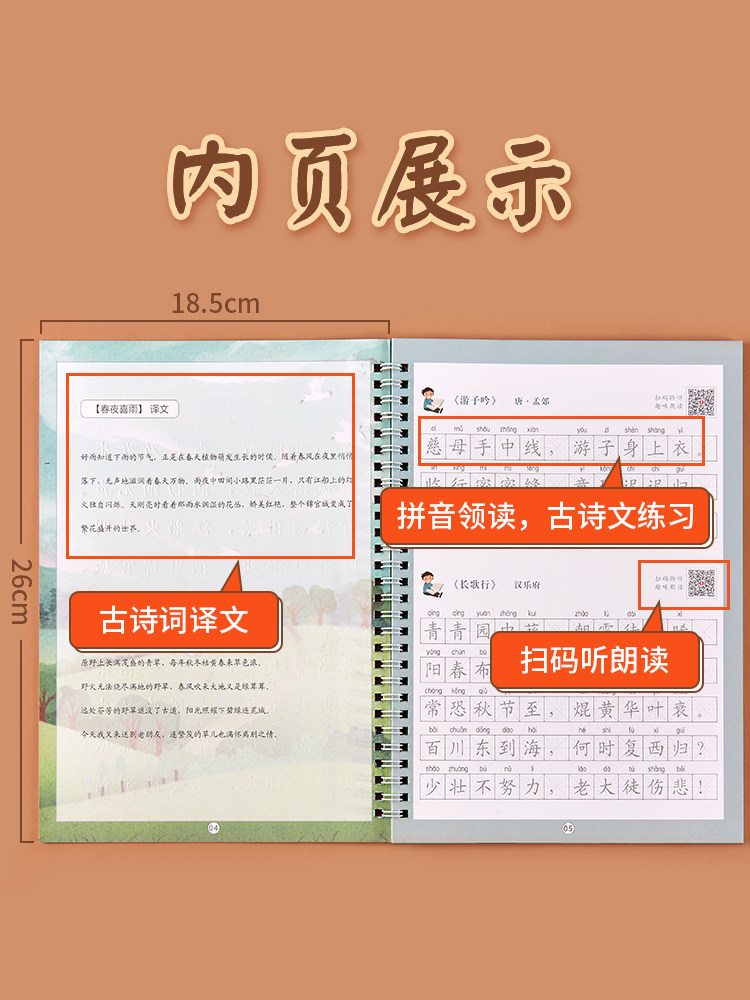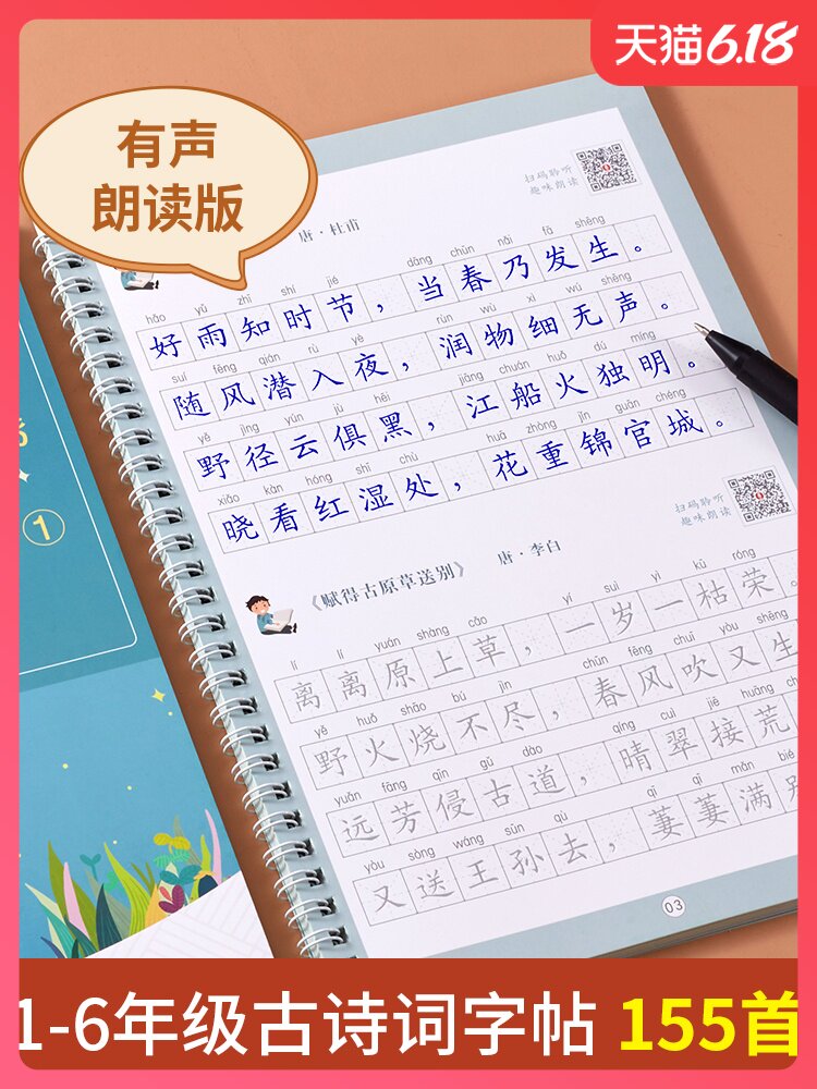 Древняя поэзия для школьников и студентов, тетрадь, детская базовая каллиграфия для тренировок, 1-6 года