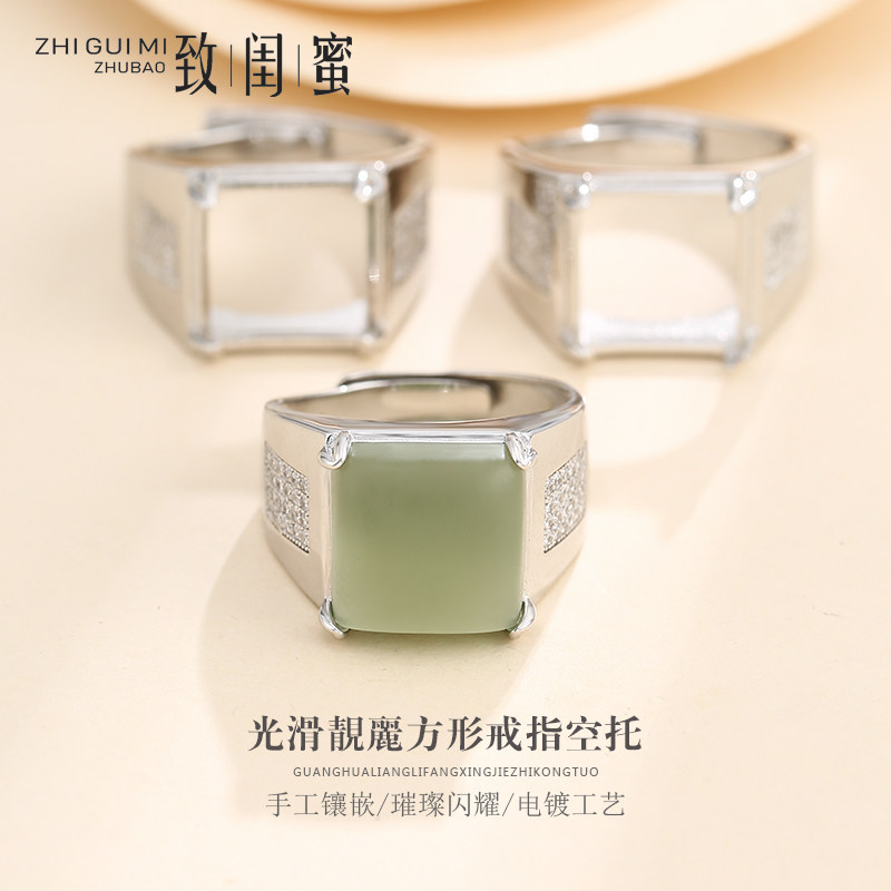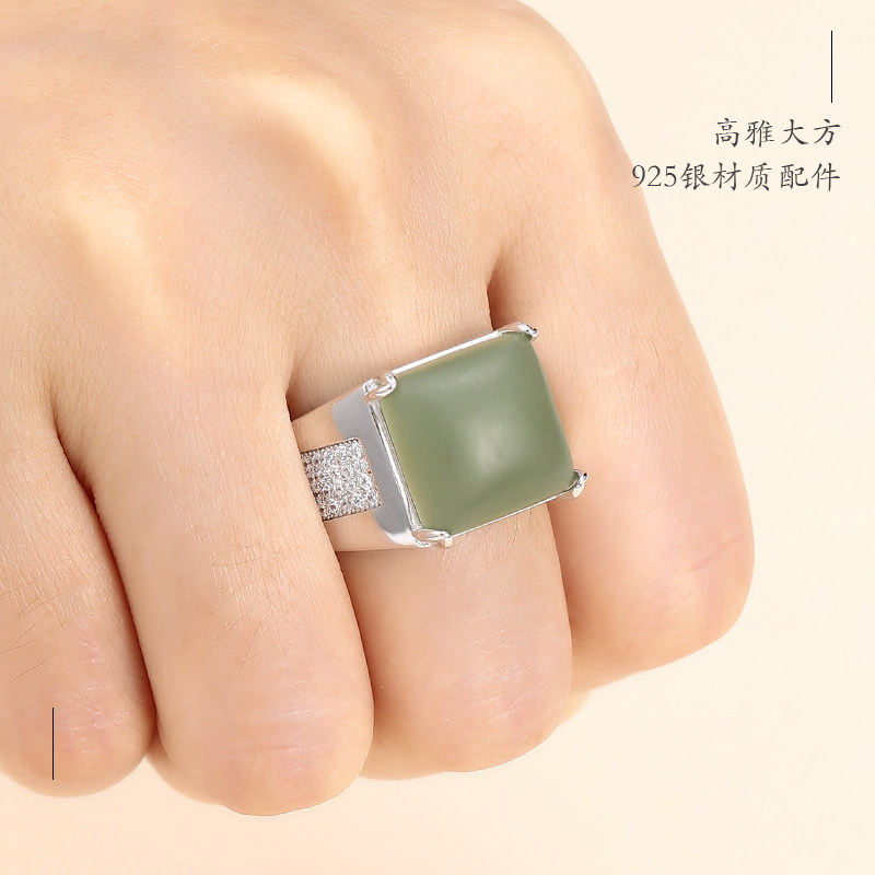 Платиновая квадратная инкрустация камня из нефрита подходит для мужчин и женщин, яшма, обручальное кольцо, серебро 925 пробы, белое золото 18 карат, золото и серебро, 13mm