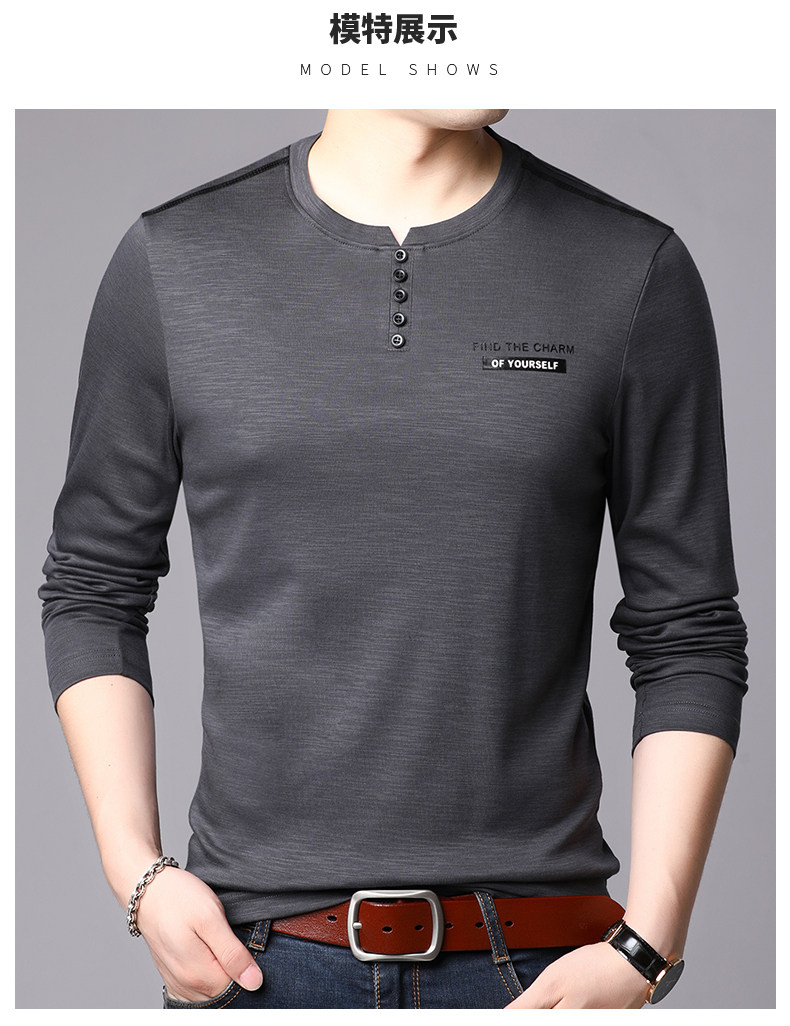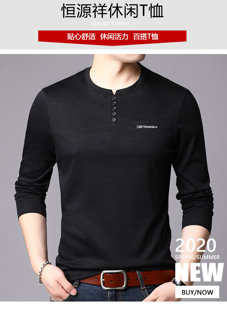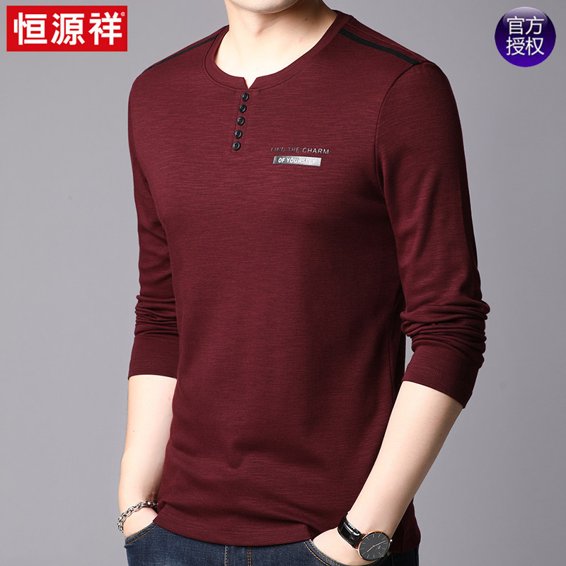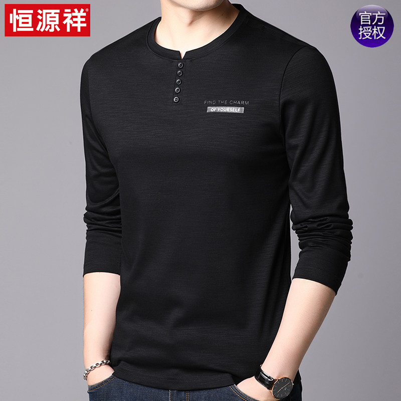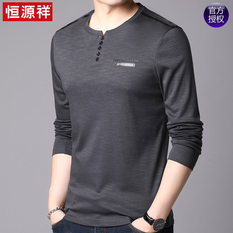 恒源祥 Осенний лонгслив с круглым воротником, хлопковая толстовка, базовое приятное телу термобелье для отдыха, оверсайз