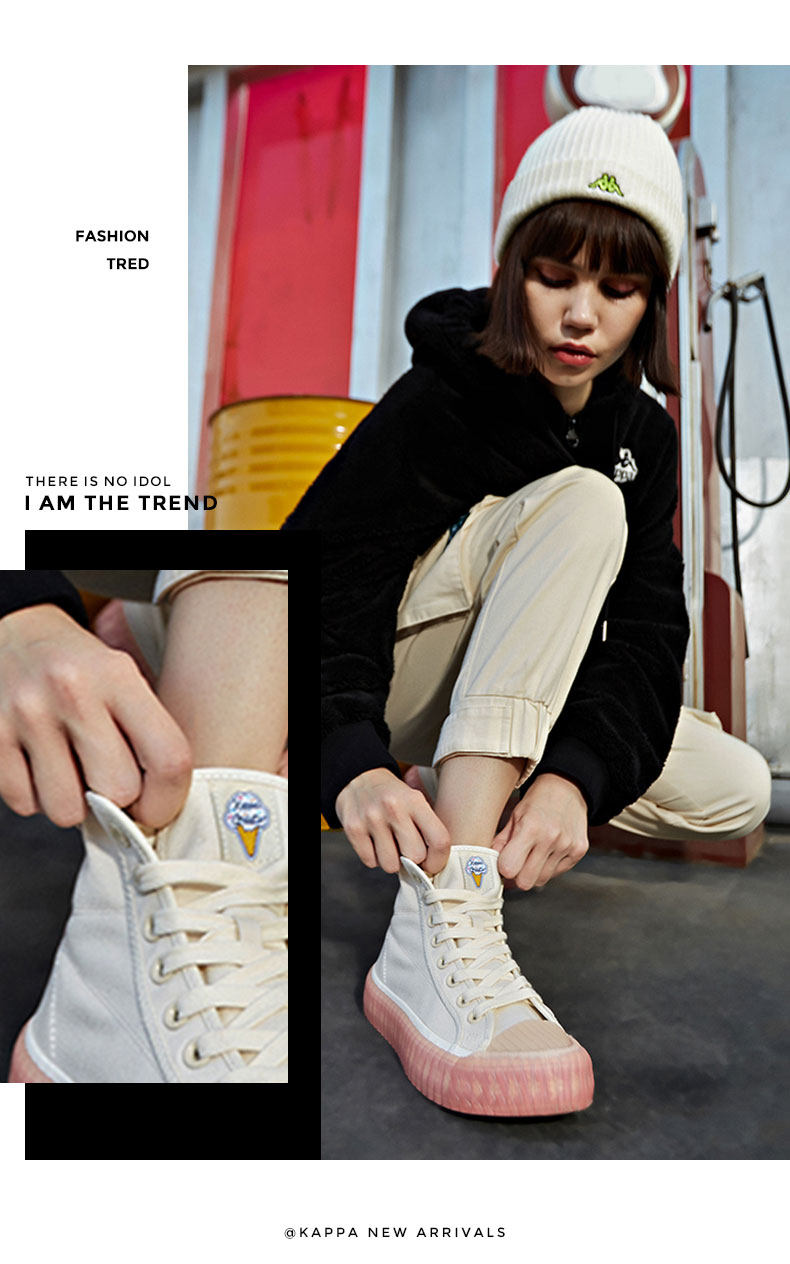 Kappa Kapa мужская и женская высокая кассовая обувь Canvas Canvas Shoes маленькие белые туфли k09y5/k0a25vs12