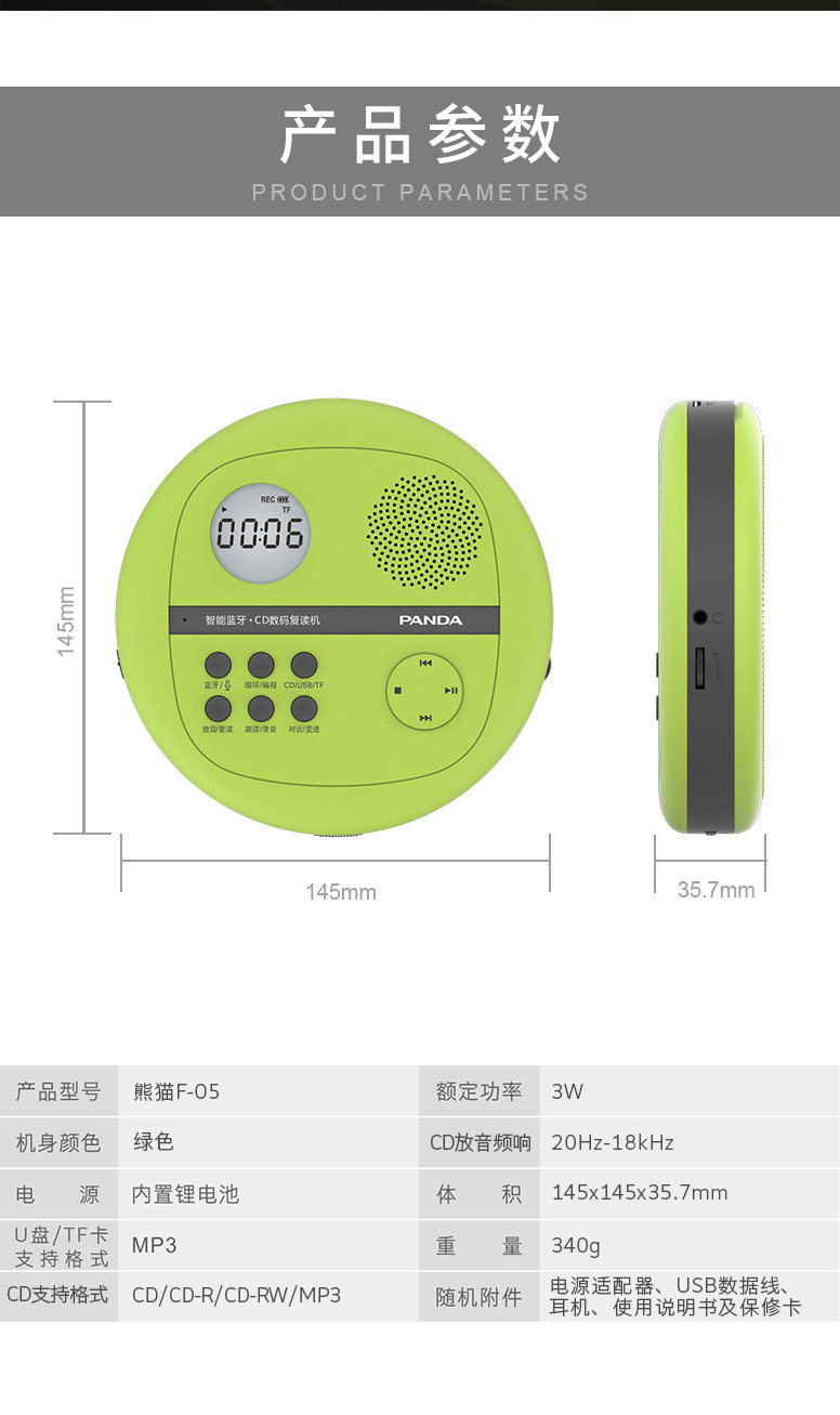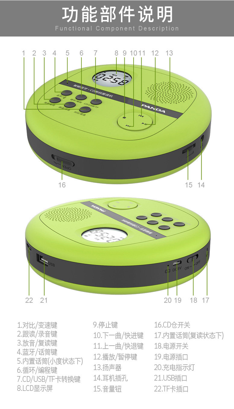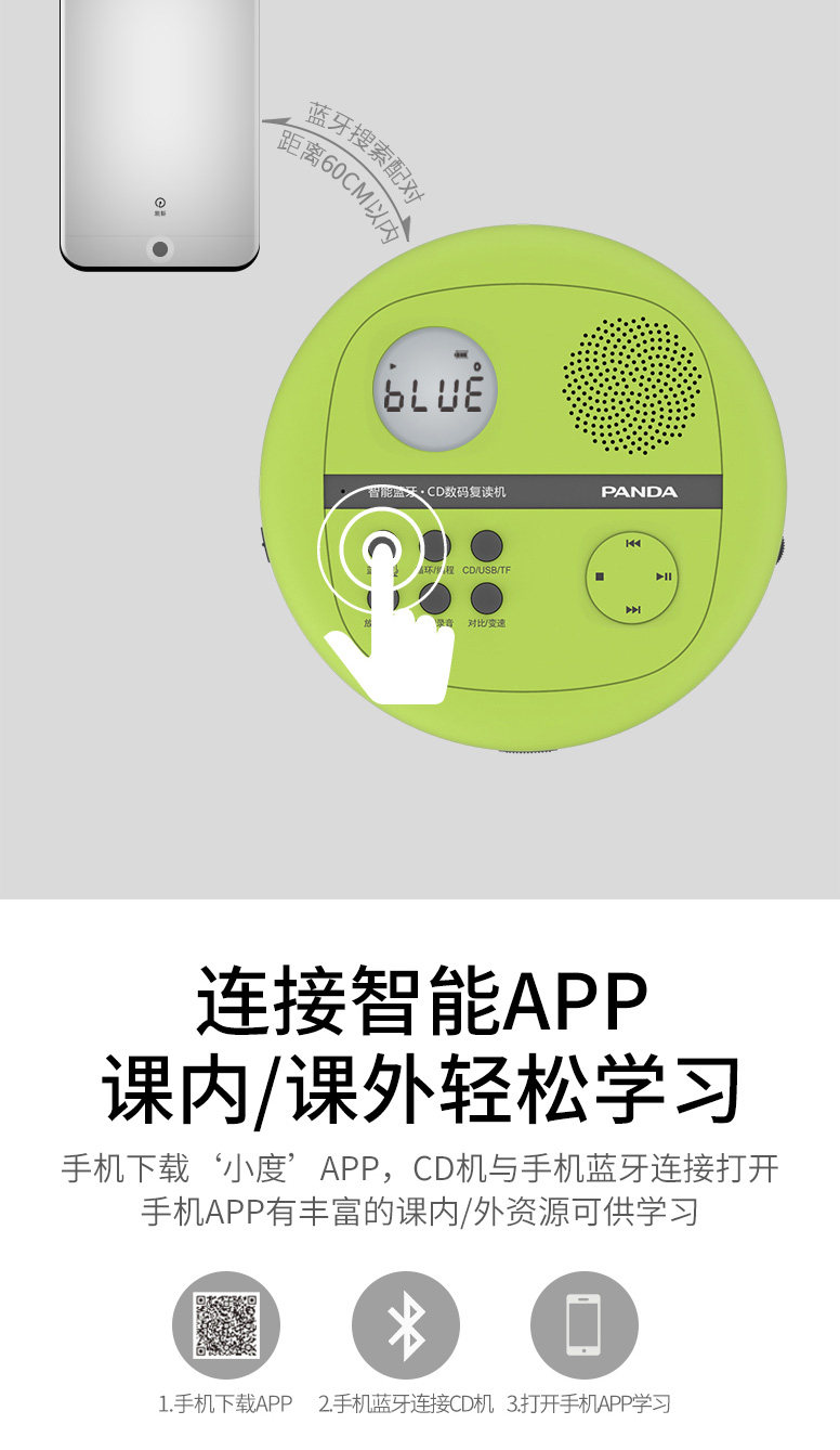 Портативный плеер, обучающая машина для школьников, панда, bluetooth, английский