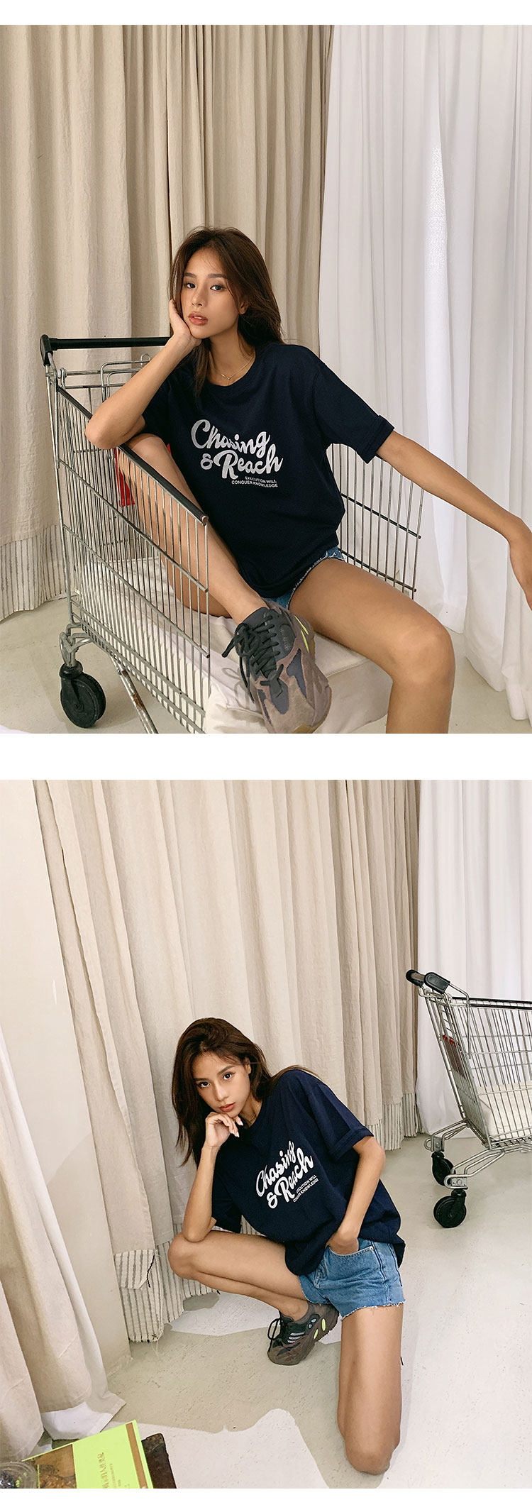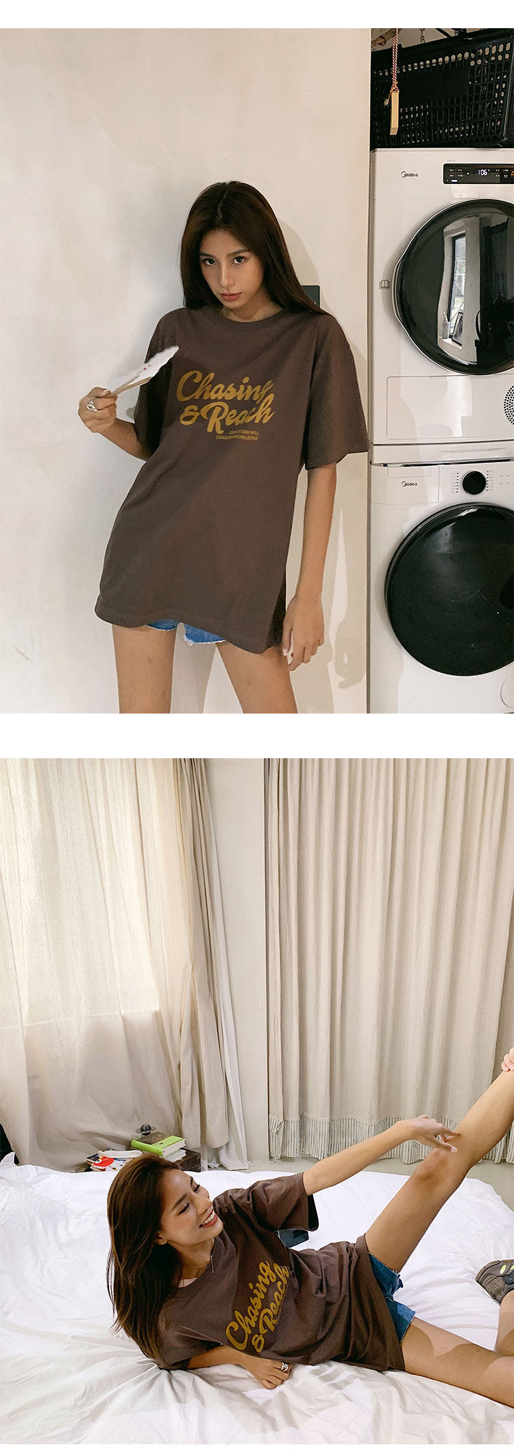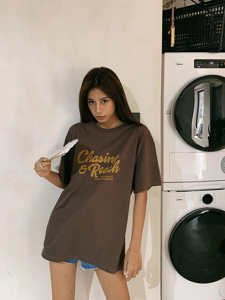 Длинная хлопковая футболка, в корейском стиле, 2020 года, оверсайз