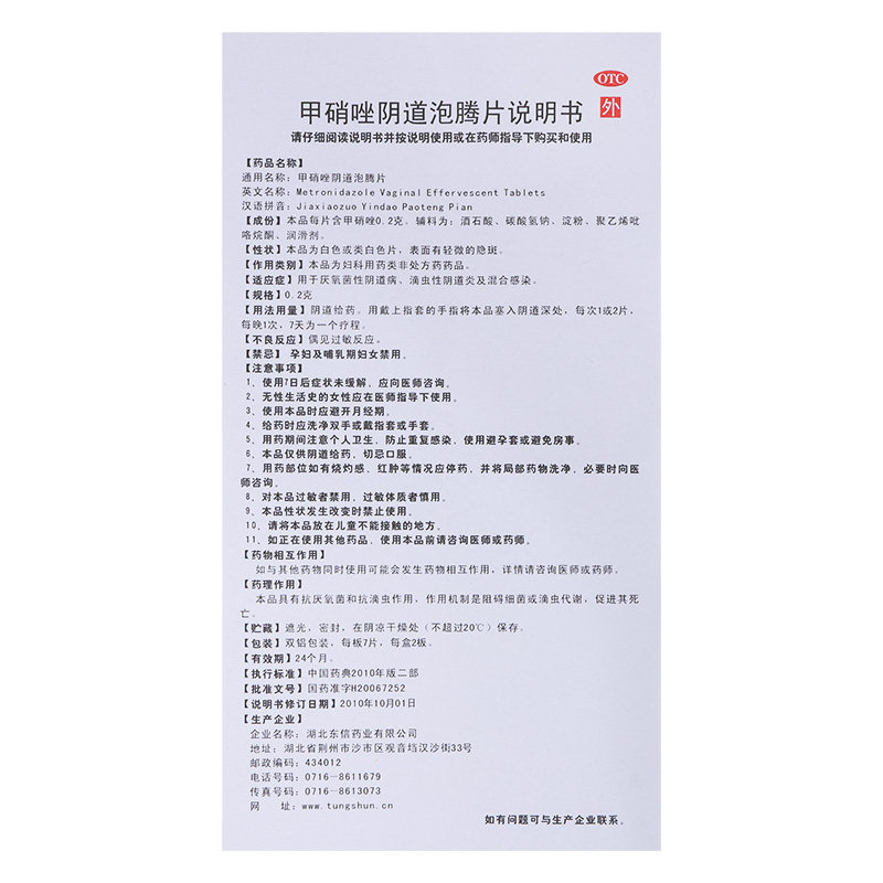 东信 Метронидазольные таблетки из вагинального пены оснащены 14 вульваром зудящими гинекологическими фармацевтическими таблетками металлара.