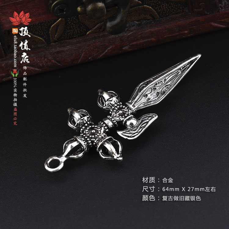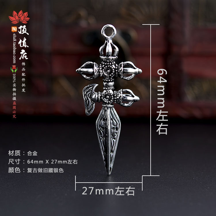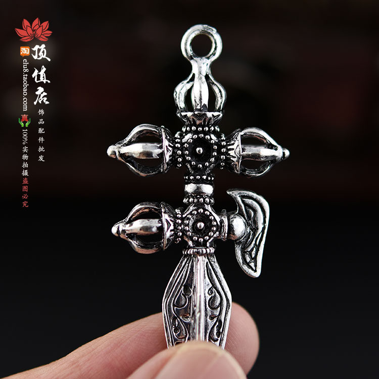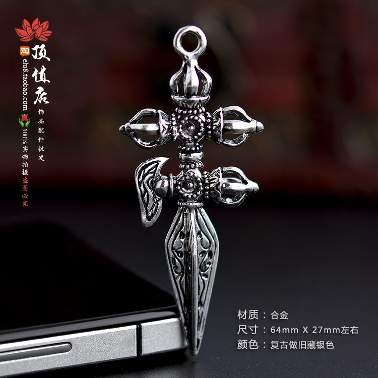 Тибетский серебряный желудочный сплав с алмазными пестиками 橛 Rippling Tibetan King Kong 镢 Подвеска, Козерог Песслот Пестил и падающий волшебный бриллиант