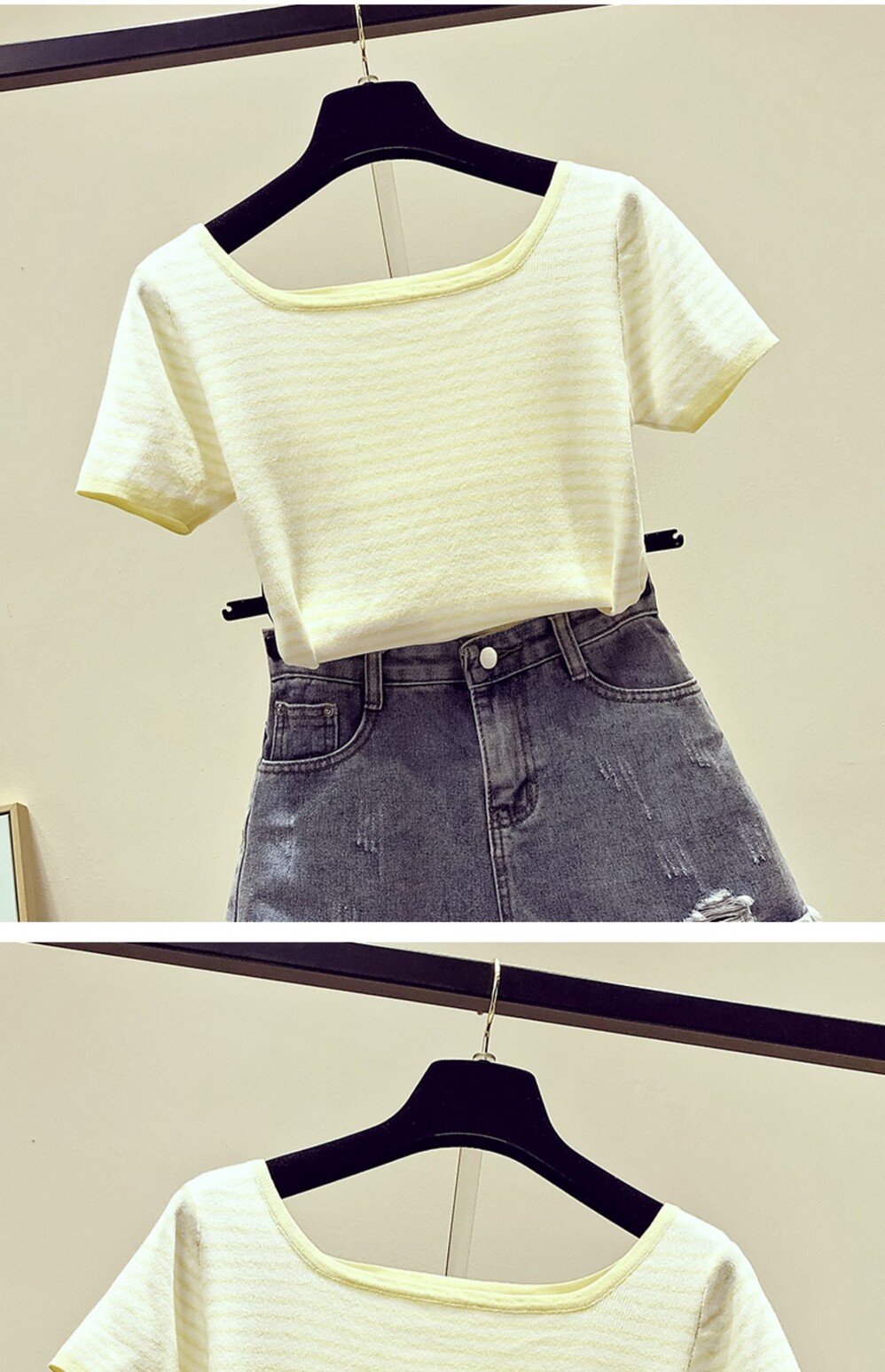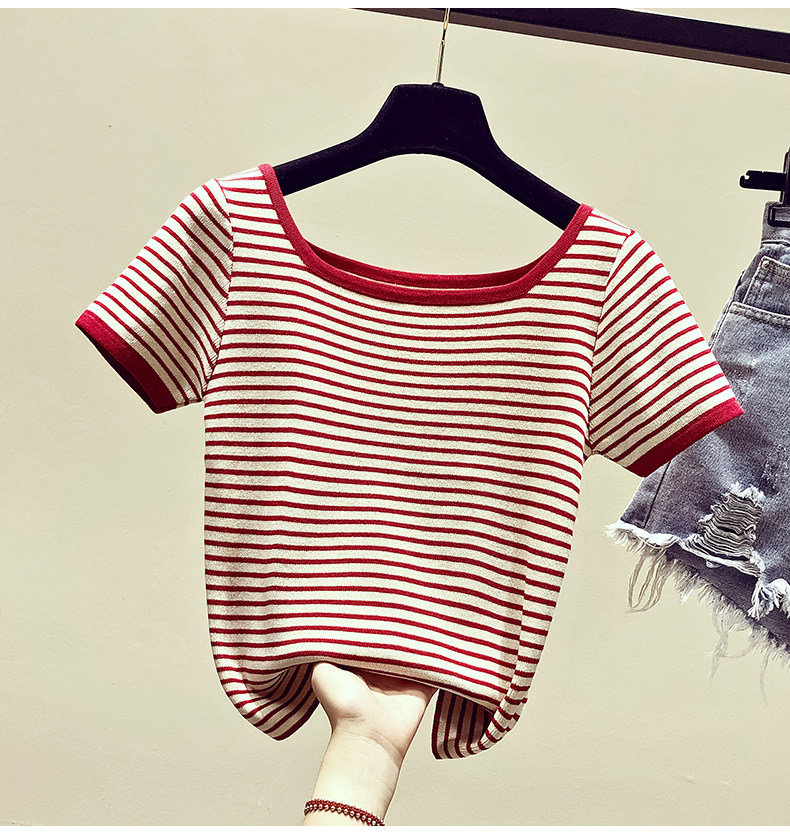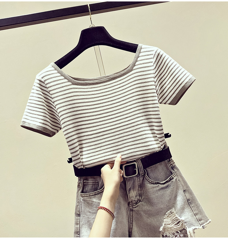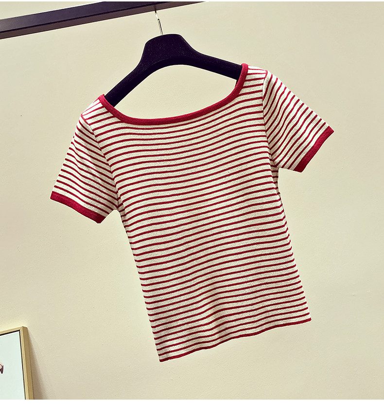 Летняя приталенная трикотажная короткая футболка с коротким рукавом, коллекция 2021, в корейском стиле, открытые плечи