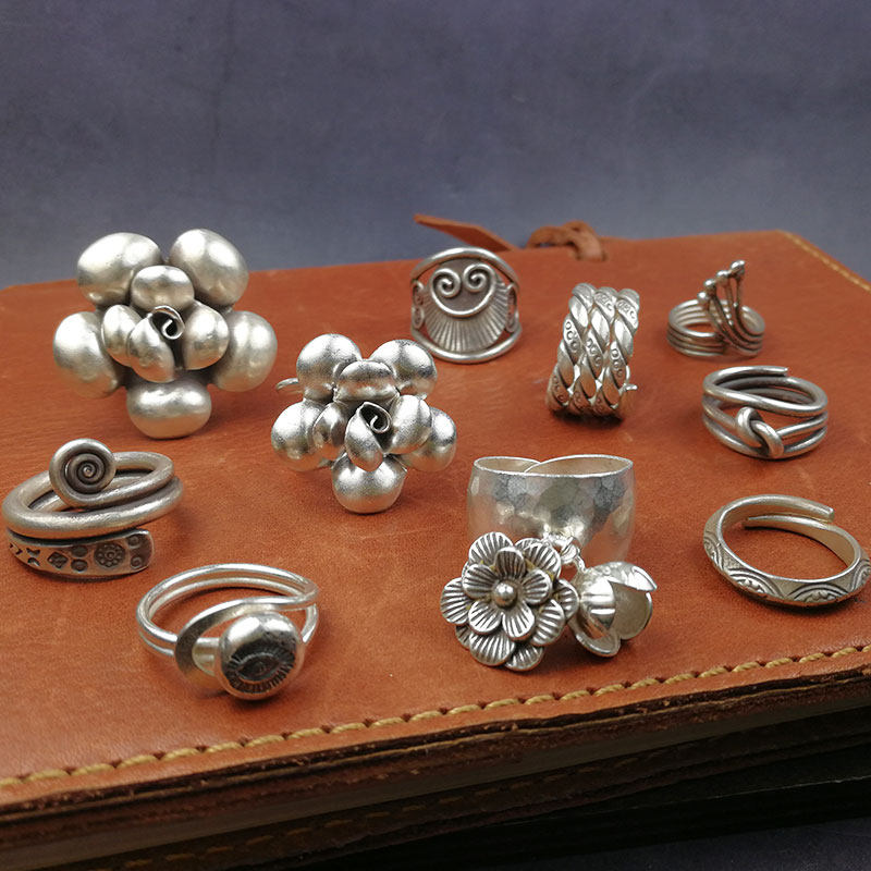 Ретро плетеное кольцо ручной работы, Таиланд, серебро 925 пробы, подарок на день рождения, в цветочек