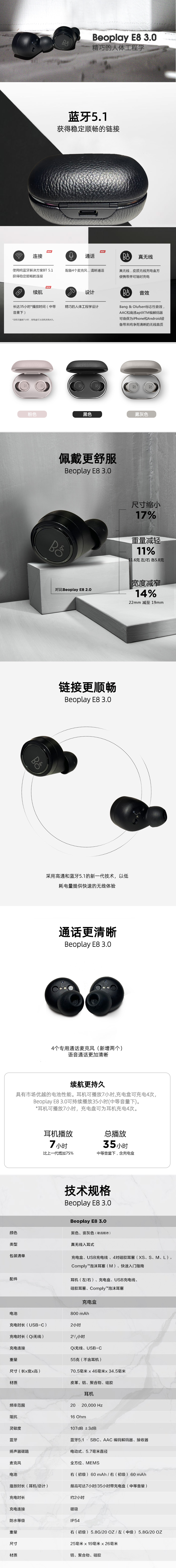 B&O E8 3.0 True Wireless Bluetooth -гарнитура в движении наушников стерео