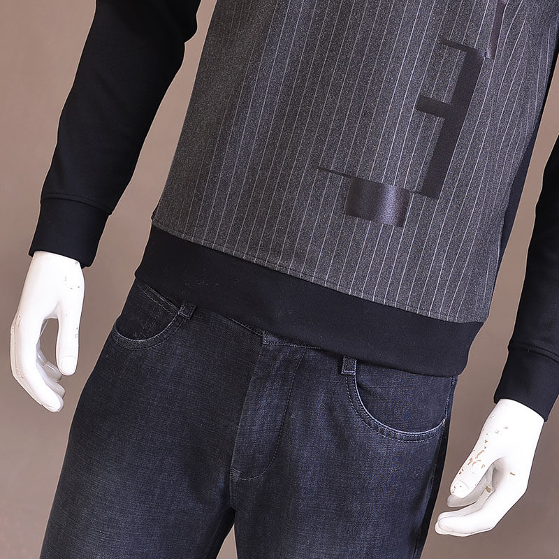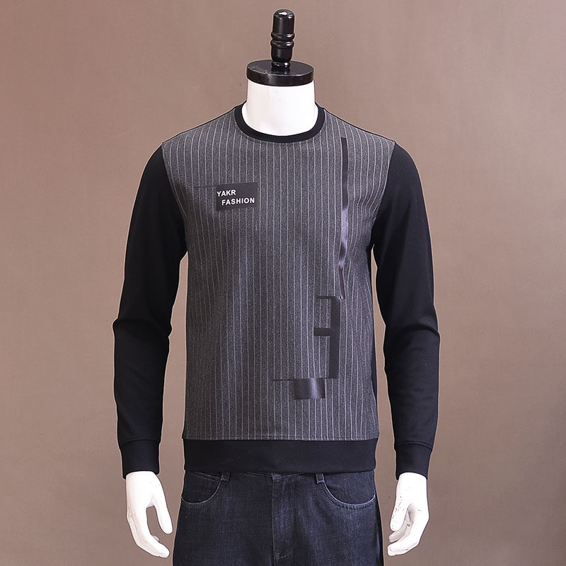Сшитая на заказ мужская облегающая мужская рубашка с круглым вырезом и принтом, с длинными рукавами из плотного хлопка, внутренняя одежда в Т-образную контрастную полоску, микроэластичный пуловер, футболка с длинными рукавами