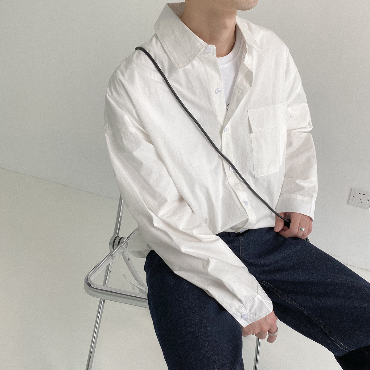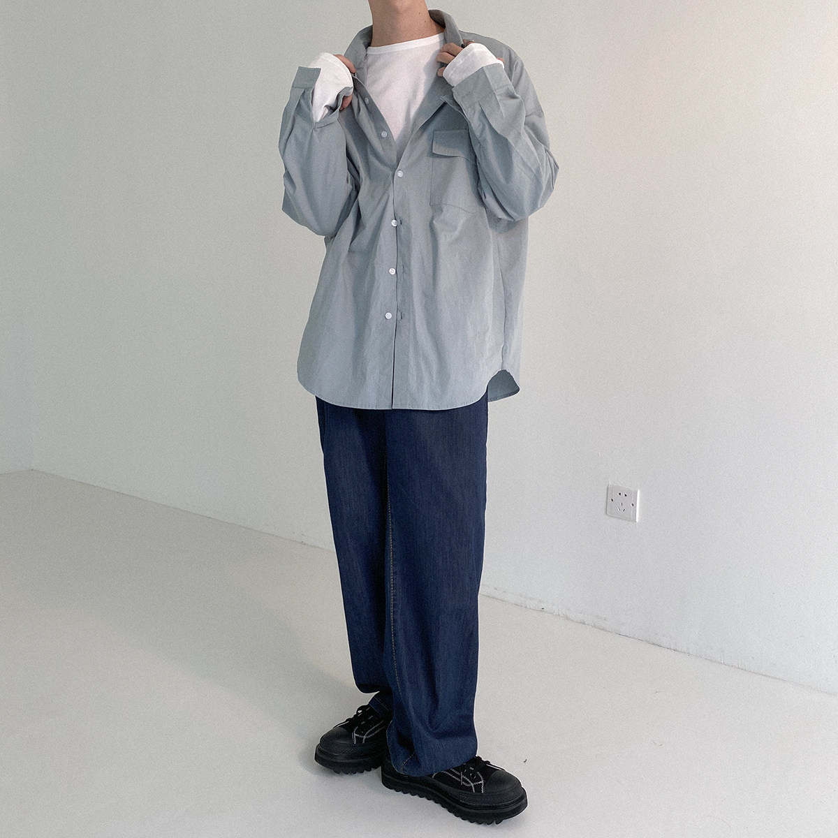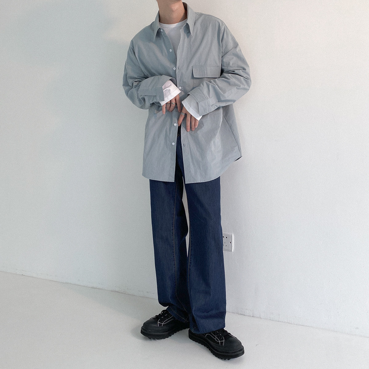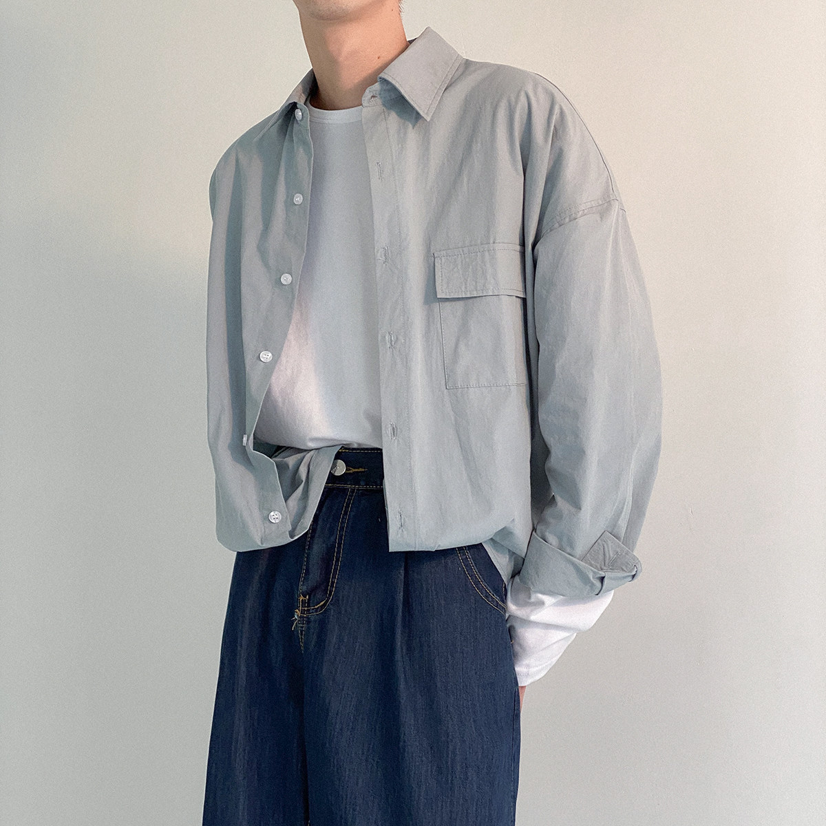 Минималистичный лонгслив, рубашка, демисезонная трендовая брендовая куртка для отдыха, оверсайз