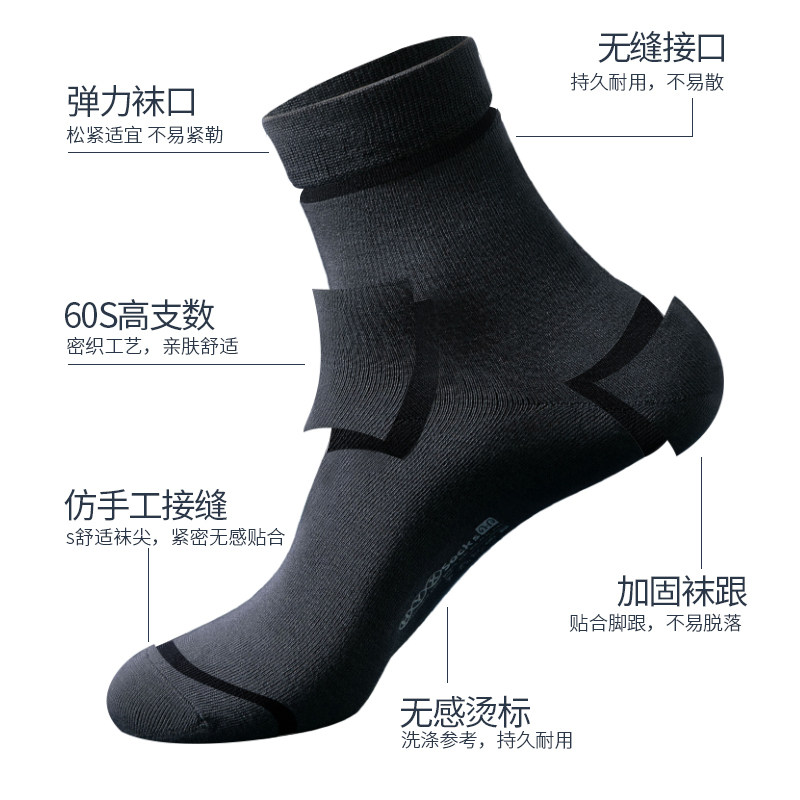 恒源祥 Мужские черные антибактериальные тонкие летние дышащие носки, впитывают пот и запах, средней длины
