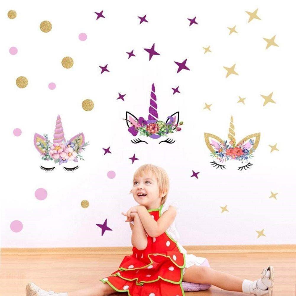 Красочные цветочные животные Unicorn Семейная стена наклейка 3d Art de