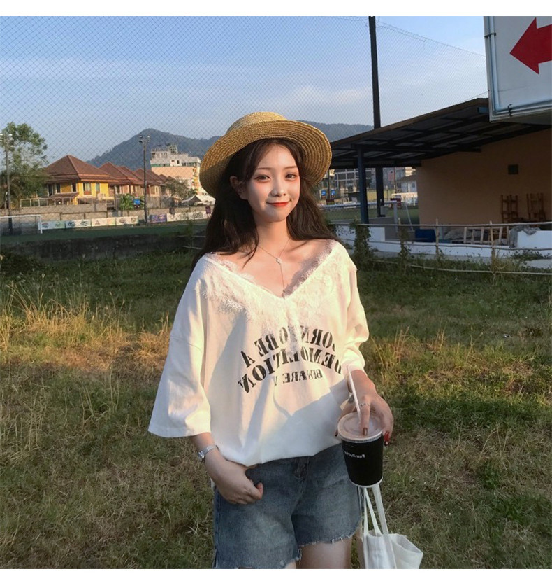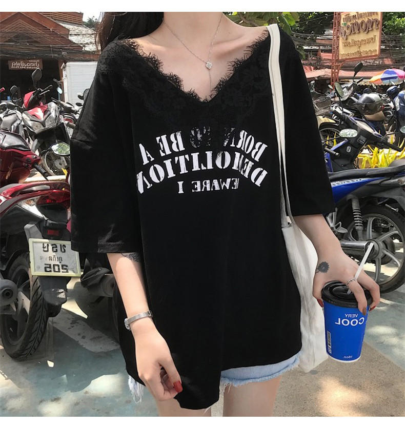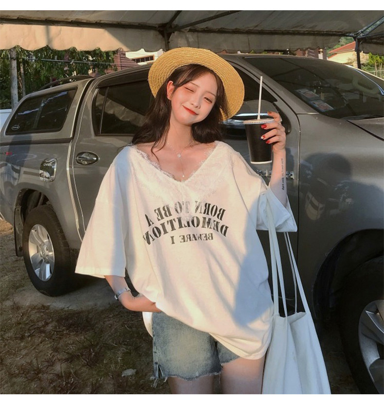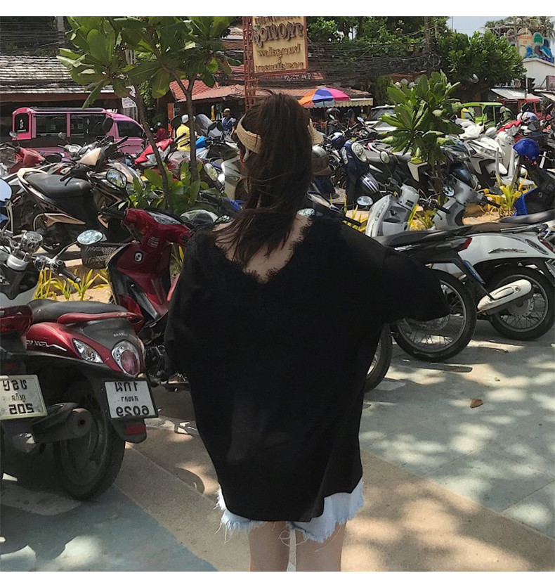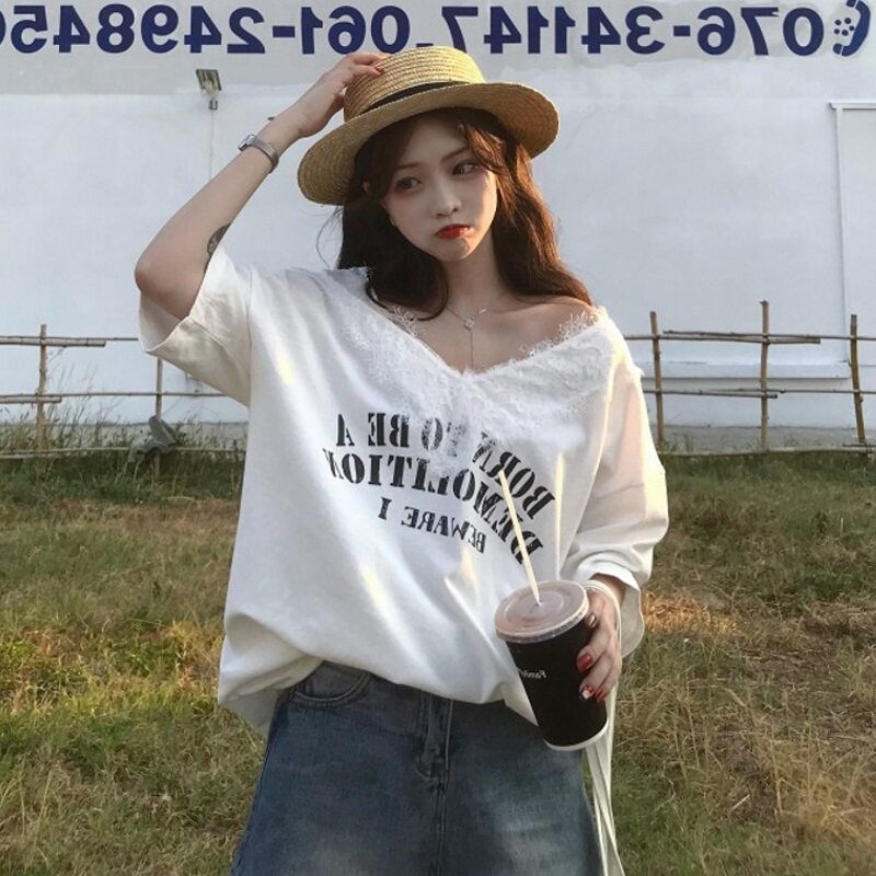 Небольшая дизайнерская кружевная футболка, коллекция 2022, тренд сезона, V-образный вырез, свободный крой