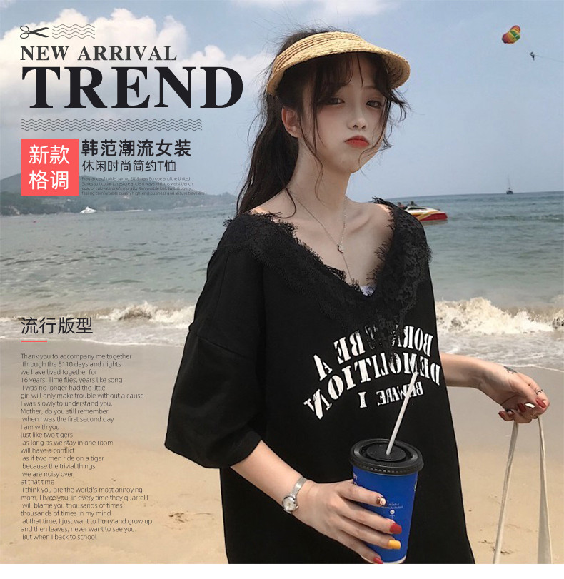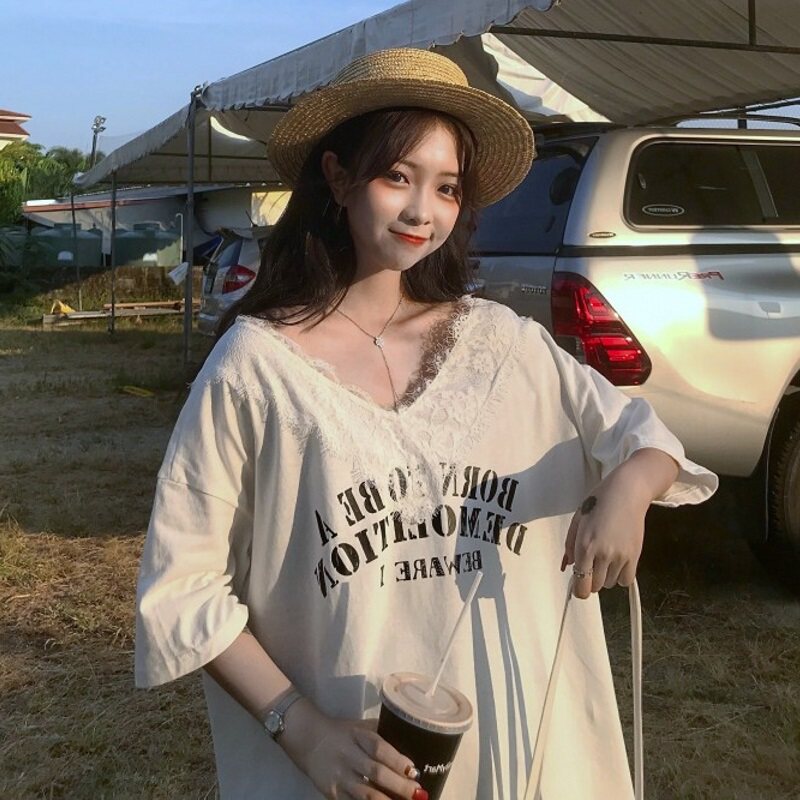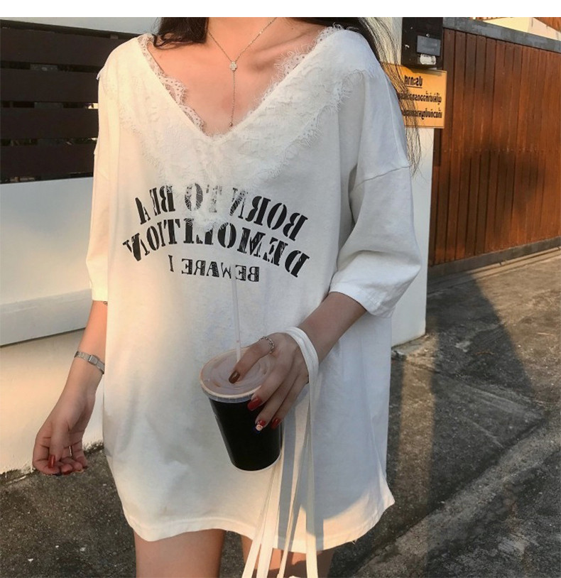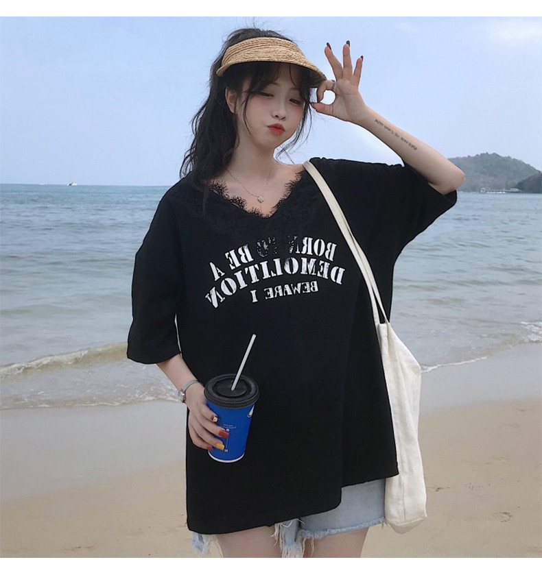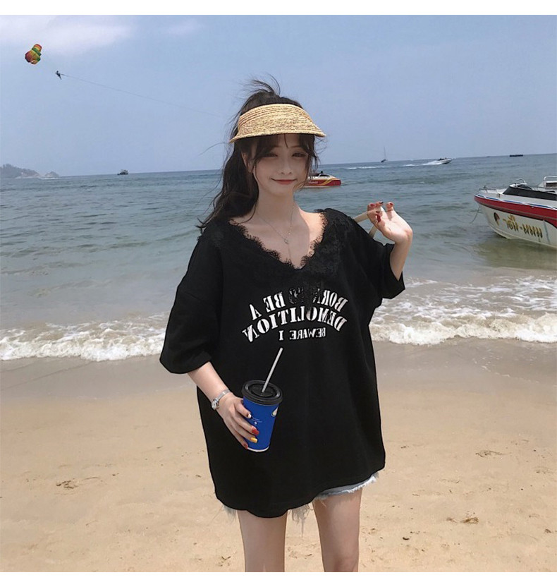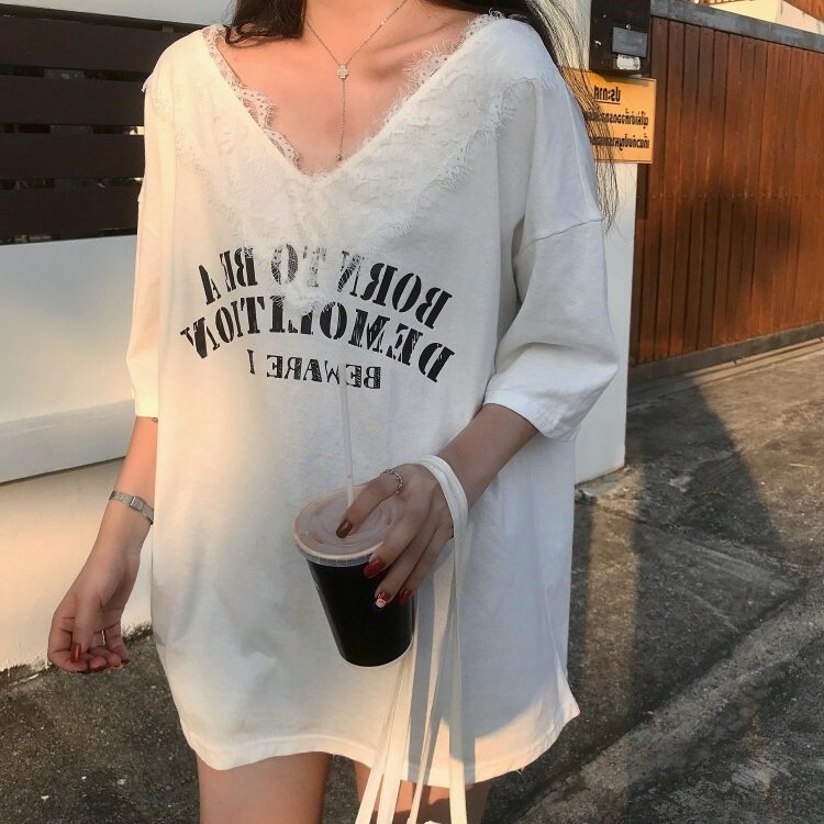Небольшая дизайнерская кружевная футболка, коллекция 2022, тренд сезона, V-образный вырез, свободный крой