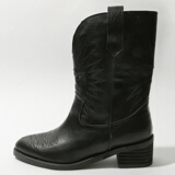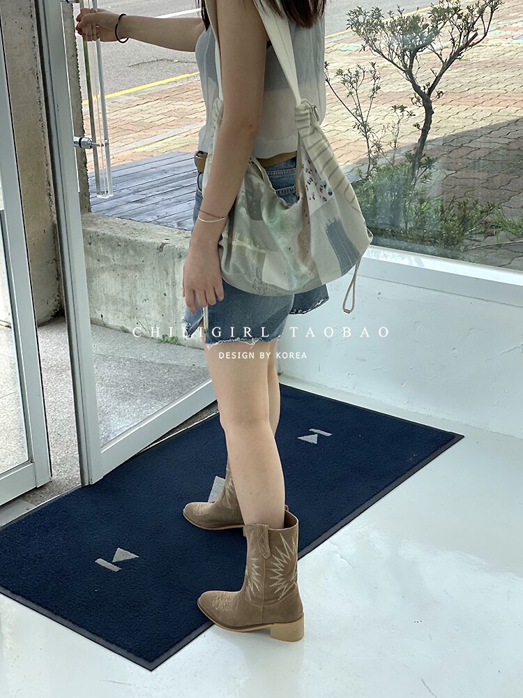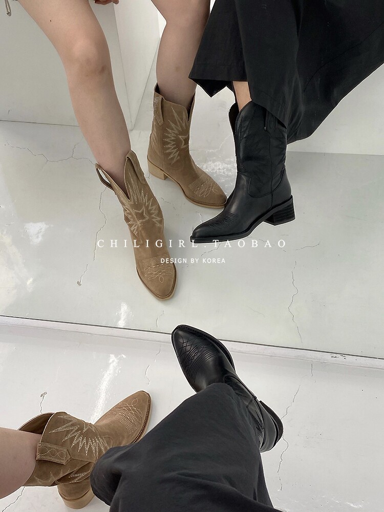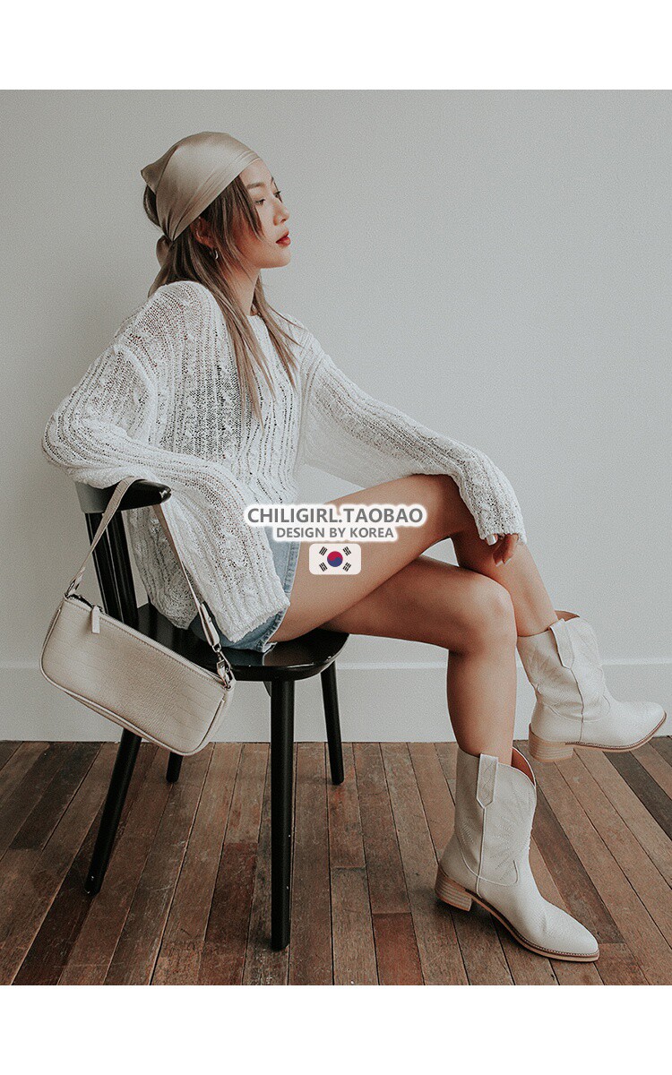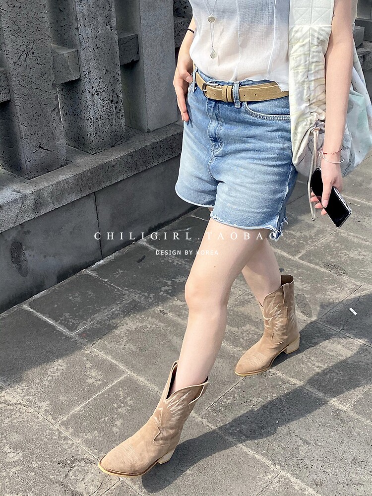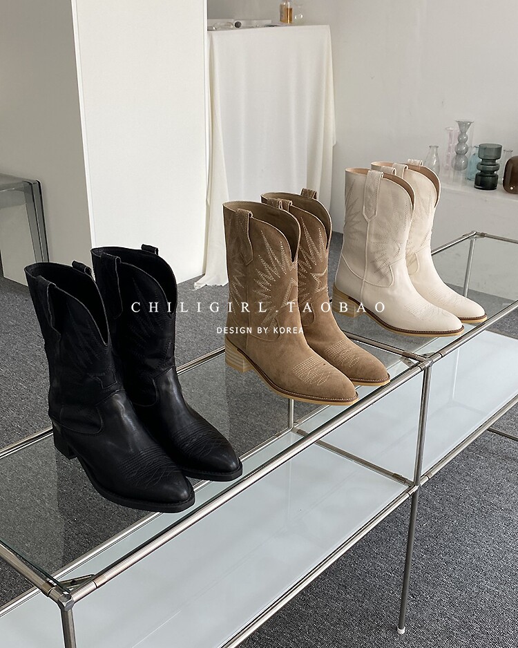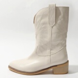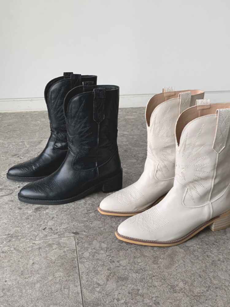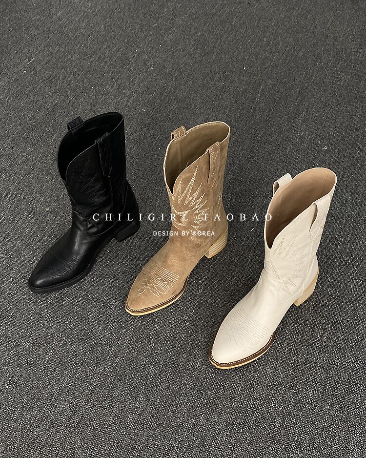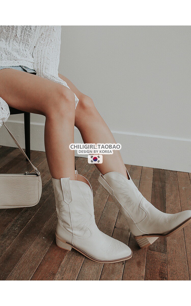 Товар, демисезонные белые джинсовые ретро ботинки, с вышивкой, средней длины