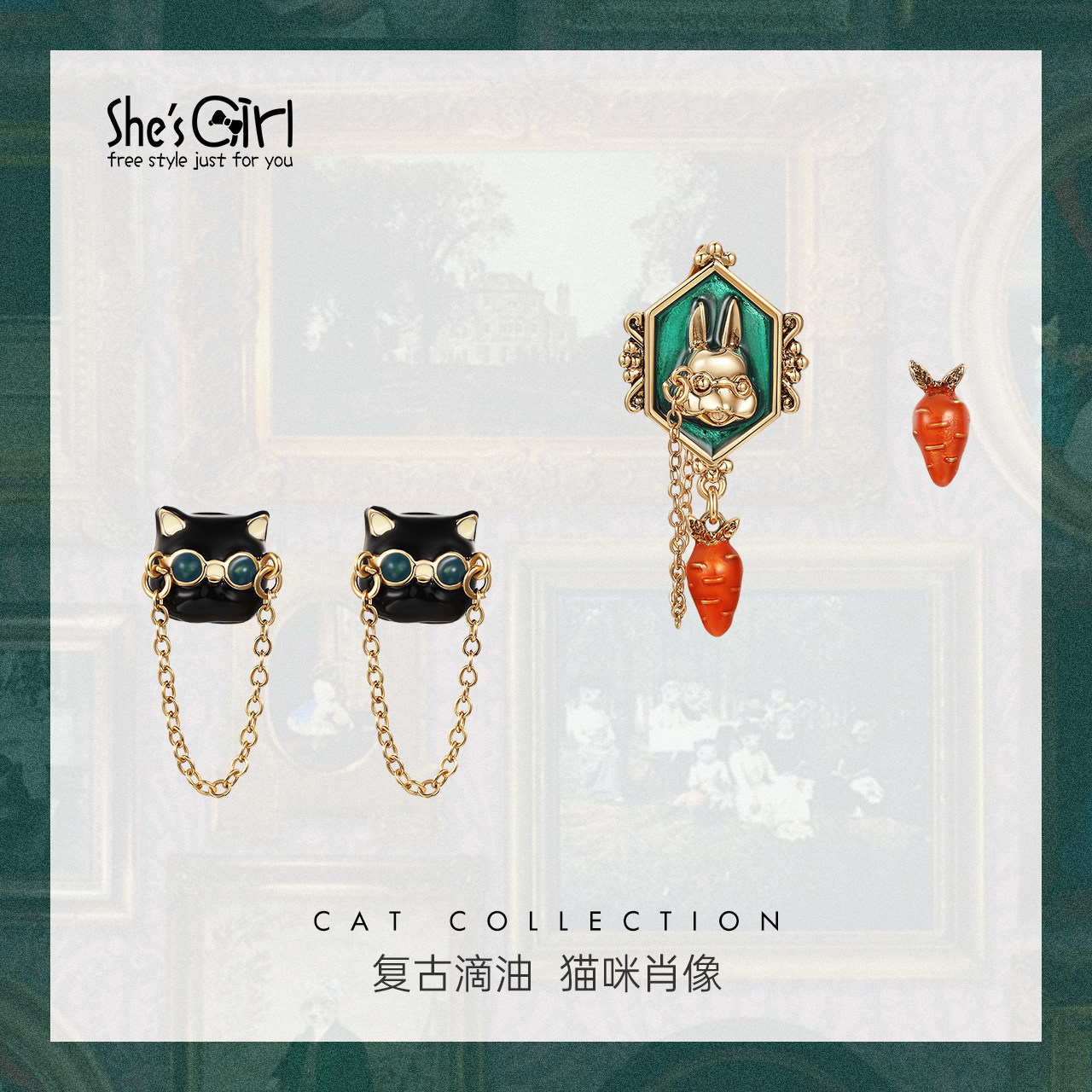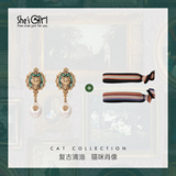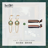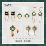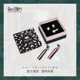 Ретро милая фоторамка, серьги, комплект, кот, в британском стиле