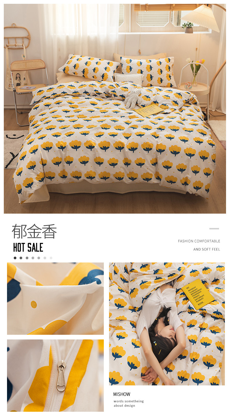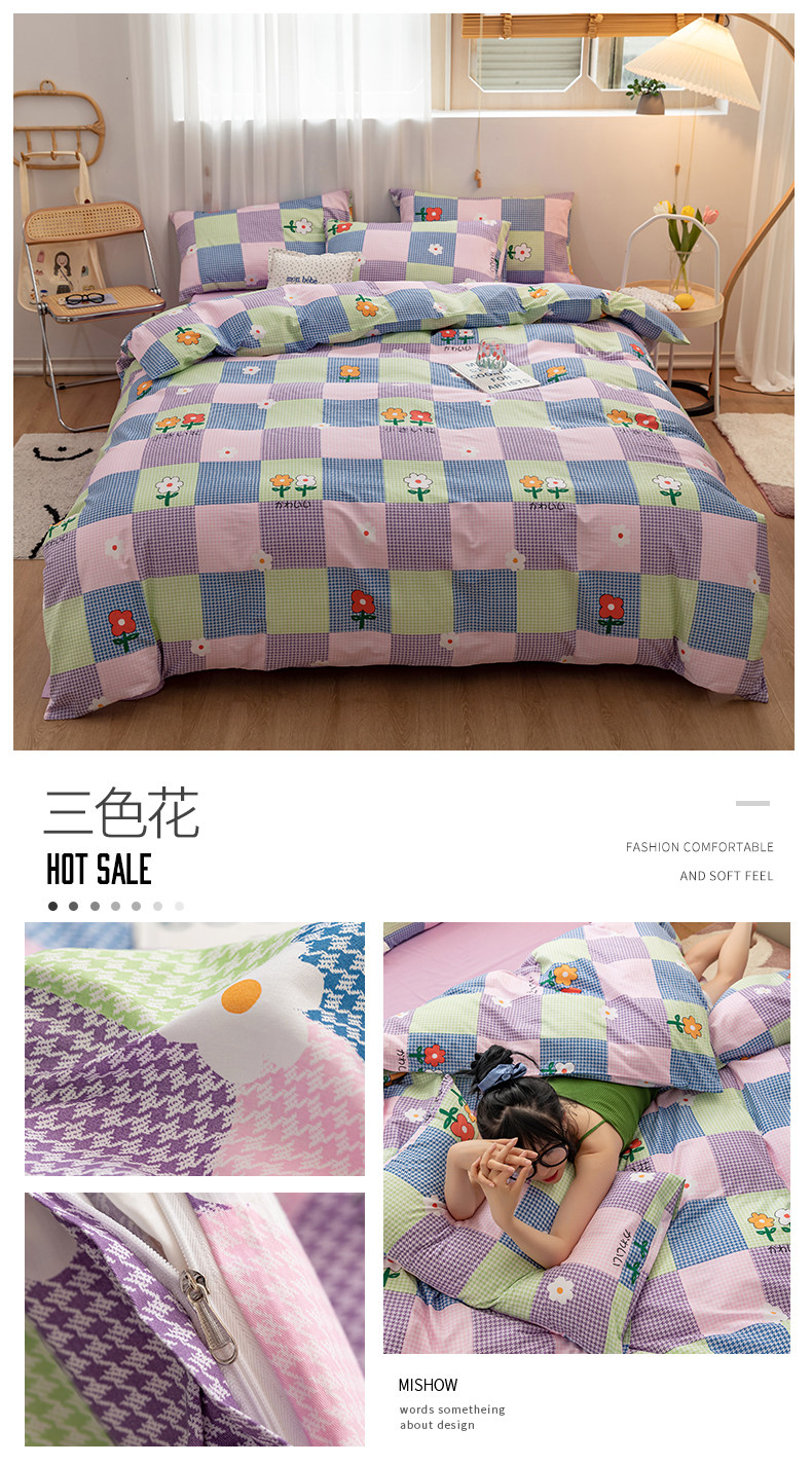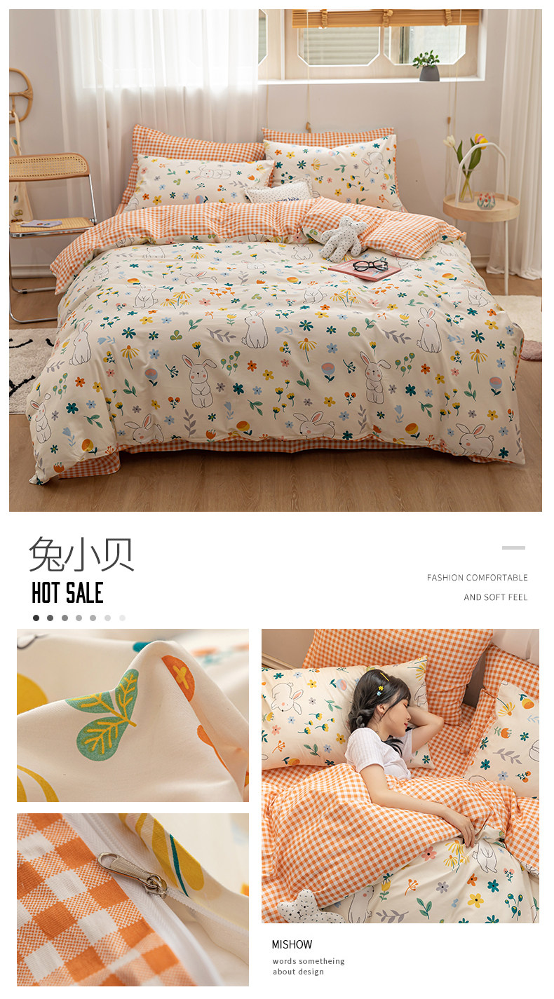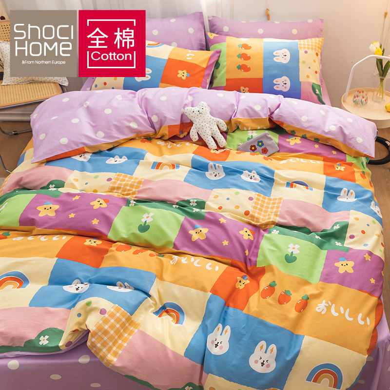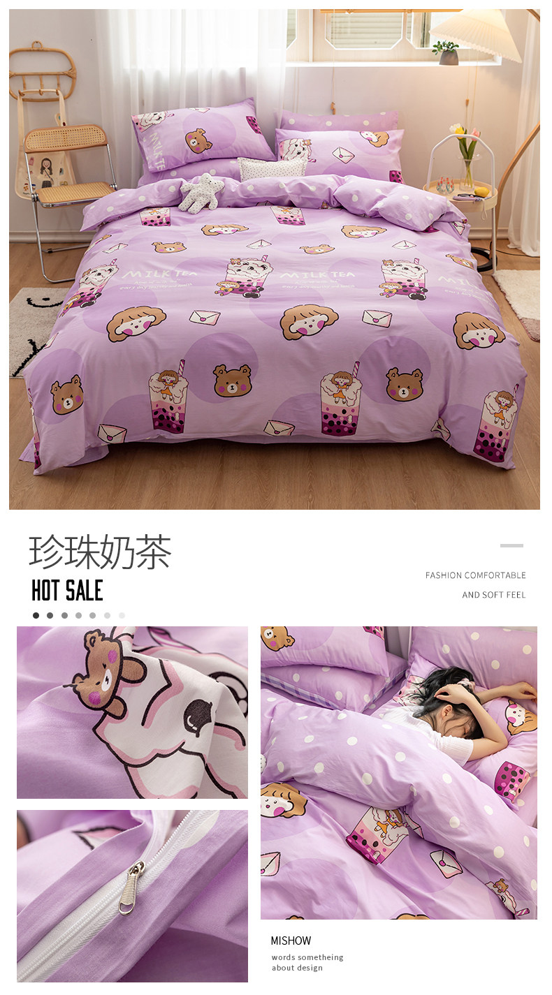Брендовый хлопковый комплект, простыня, пододеяльник, покрывало для школьников и студентов, популярно в интернете, 4 предмета, 1.2м, 3 предмета