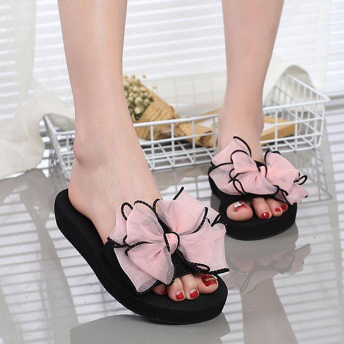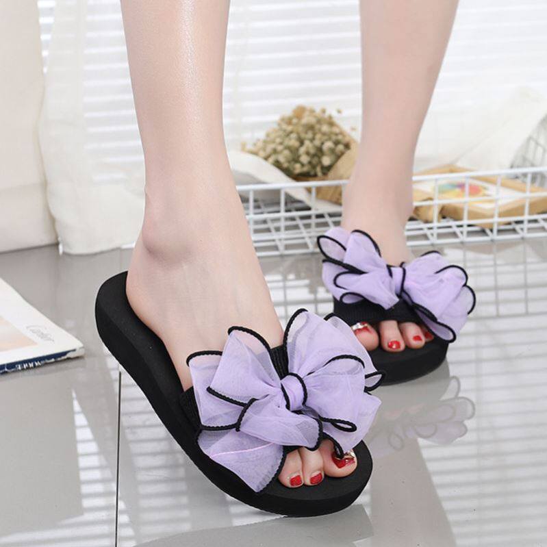 Пляжная нескользящая пляжная обувь с бантиком, летние модные комфортные тапочки