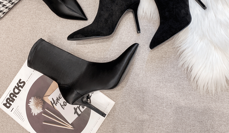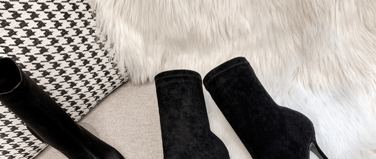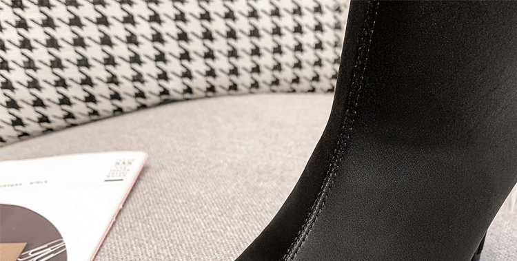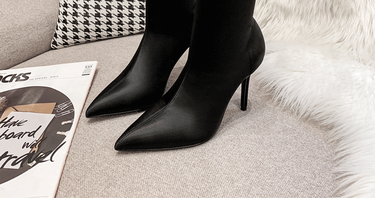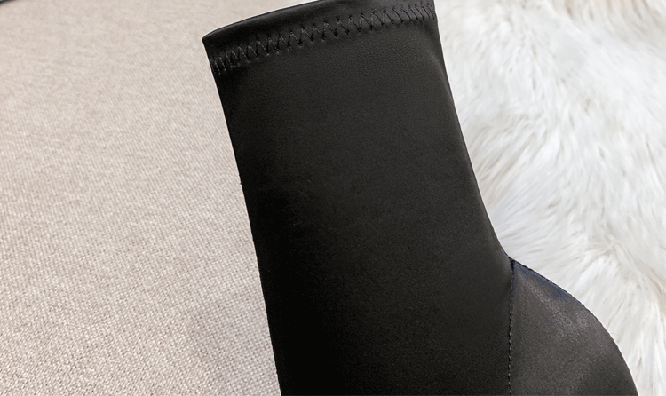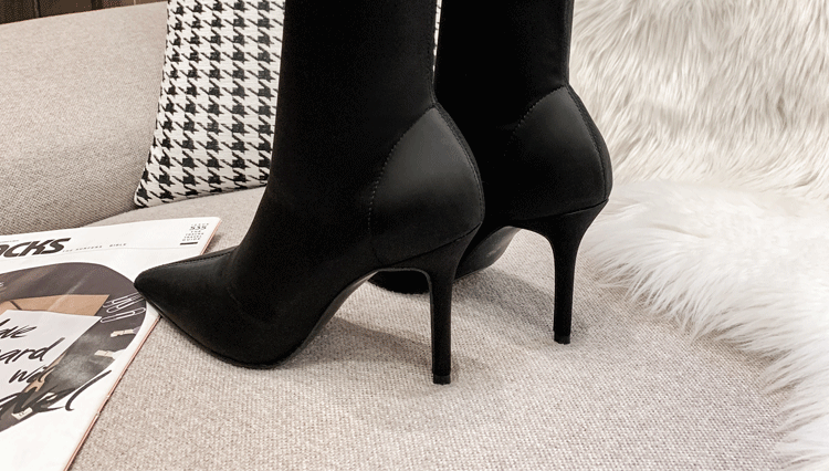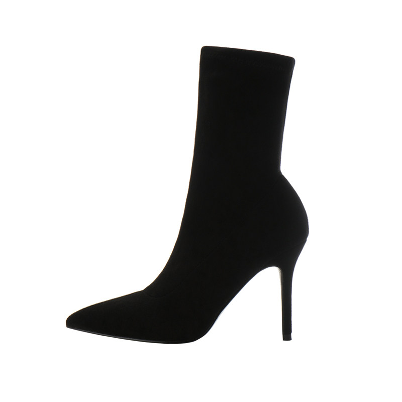 Эластичная черная обувь с заостренным носом на высоком каблуке, короткие сапоги, ботинки, средней длины