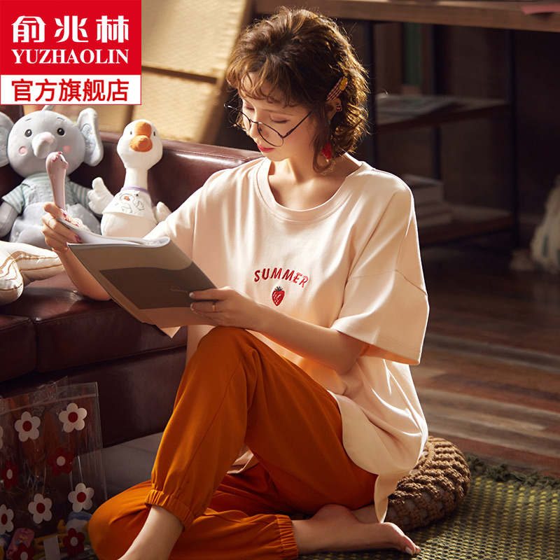 Хлопковая летняя пижама для школьников, штаны, комплект, в корейском стиле, короткий рукав